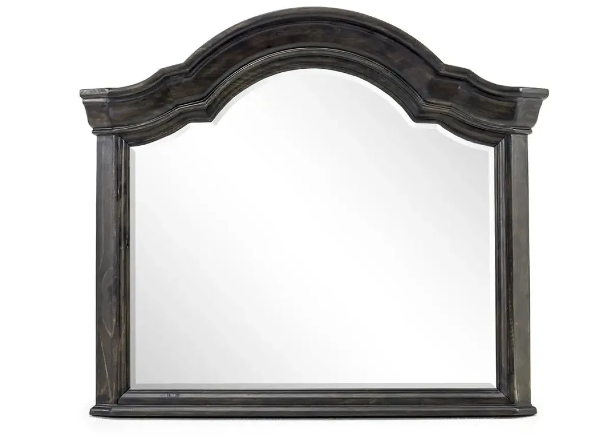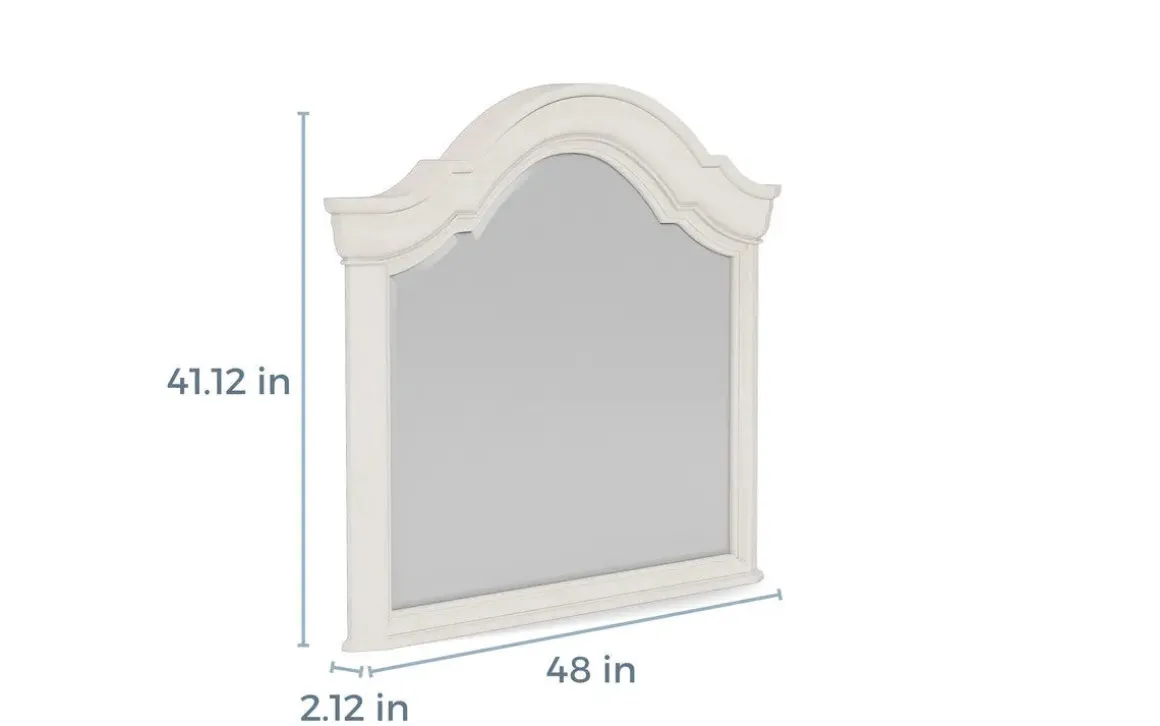 Mirror, mirror on the wall, the Bellamy Mirror in White is the fairest of them all! With a classic white frame and beautiful shape, you’re going to love looking in this mirror and seeing your beautiful room reflected back at you. With a cornice top and right-angle corners on the bottom, the Bellamy Mirror in White will look great on its own or placed over a dresser or chest. Take a good look, you beauty! This mirror attaches to its coordinating dresser. Additional hardware may be needed for wall installation. Product Details: • Built to last out of pine solids • Perfectly matched with other pieces from the Bellamy collection • White frame looks great with any decor Finish may vary.