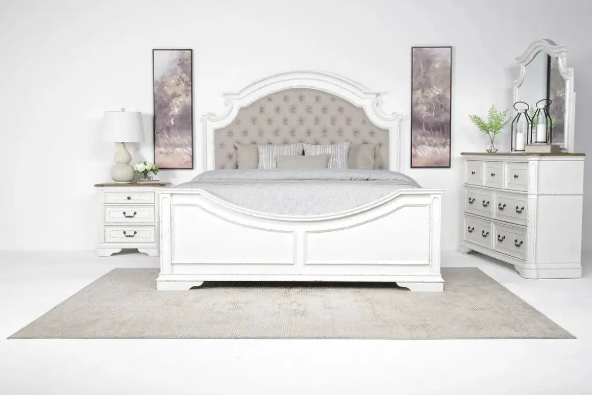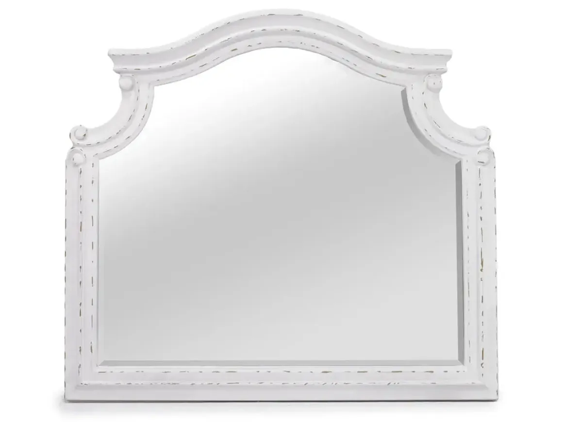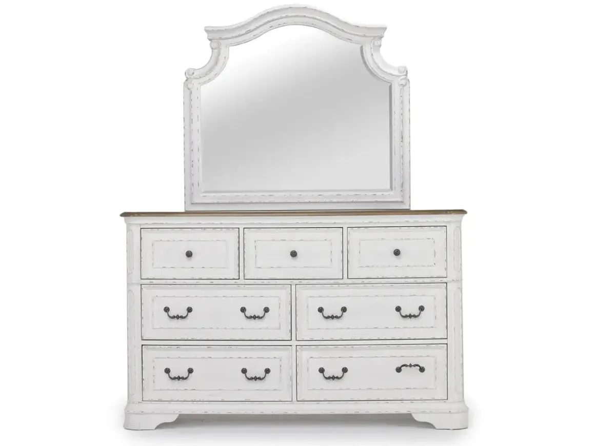 Whether you’re looking to brighten up an entryway or add sophistication to your bedroom, the Bellevue Mirror in Antique White/ Walnut is more than just a decorative piece’s an investment in style and functionality. This gorgeous two-tone mirror seamlessly combines traditional charm with a contemporary twist, making it the perfect addition to any home decor. Its generously sized frame creates an inviting focal point while reflecting light beautifully throughout your space. This mirror attaches to its coordinating dresser. Additional hardware may be needed for wall installation. Product Details: • Delicate antique white finish paired with rich walnut accents • Made from durable wood solids, MDF, and oak veneer • Measures 46 inches wide and 40 inches high