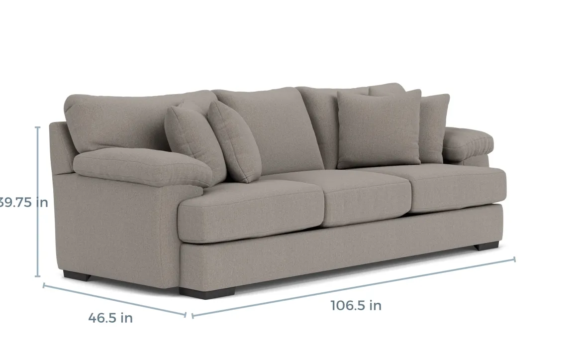 No home is complete without that one favorite sofa that elevates the look of your space, and the Bermuda Large Sofa checks off all the boxes. Excelling in both style and comfort, this soft, chenille upholstered sofa is the perfect mix of sinuous spring-support strength and foam and down blend cushion squishiness, making it the ideal addition to any living room, family room, den, or entertainment space. It even includes four style-rich accent pillows.