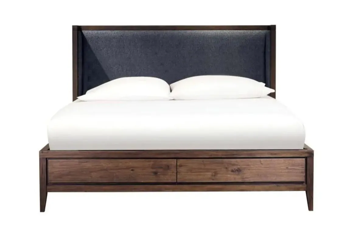 Boracay Panel Bed W/ Storage In Wild Oats Brown, Queen