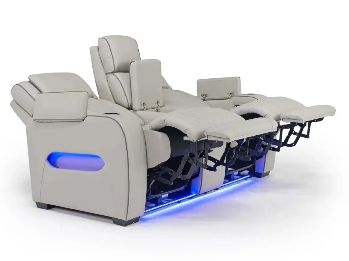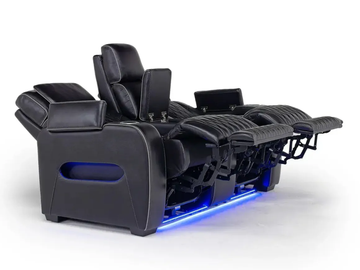 - Ambient blue LED lighting for a theater-style experience