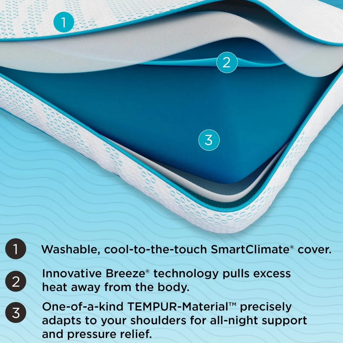 The Breeze ProHi 2.0 Pillow, Queen, combines pressure relief and enhanced cooling for side sleepers or those needing additional elevation. It features a high loft, a cool-to-touch cover, and TEMPUR® material that adapts to your shape while maintaining airflow.Product Details:• High-profile pillow for side and combo sleepers• Breathable and cool-to-touch construction• Queen size with conforming TEMPUR® support