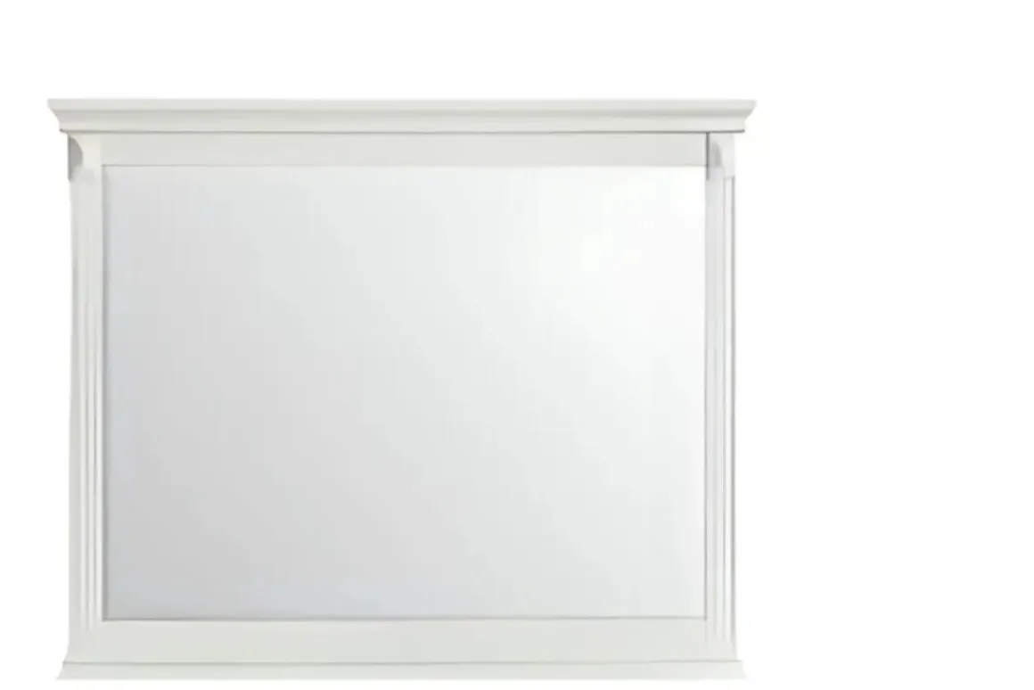 The Bridgestone Mirror in Antique White brings a soft, vintage touch to your space. Its beautifully molded frame features a gently distressed finish that pairs perfectly with traditional or cottage-inspired decor. Ideal for pairing with a dresser or hanging solo to brighten your wall. This mirror attaches to its coordinating dresser. Additional hardware may be needed for wall installation. Product Details: • Antique White finish with subtle distressing • Molded frame adds timeless detail • Versatile for use in bedrooms, hallways, or living spaces