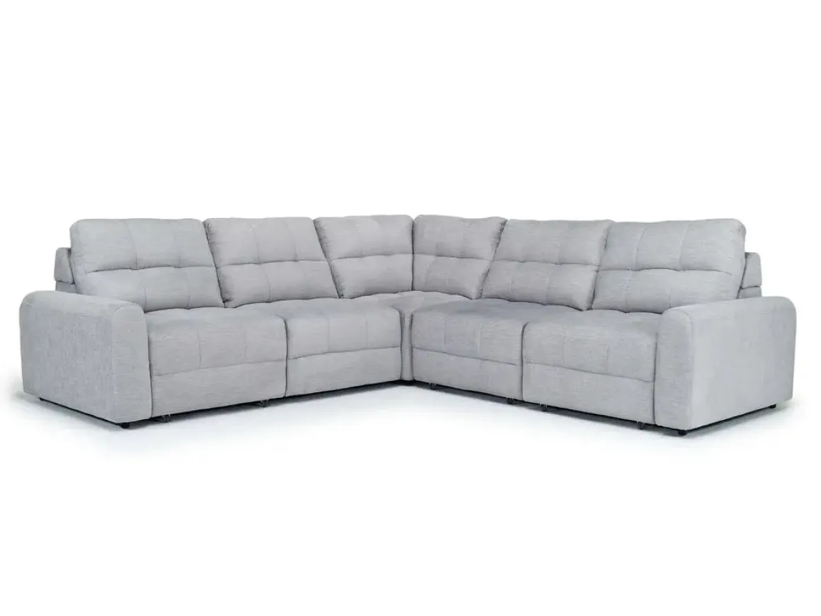 The Bryce 5 Piece Power Slider Sectional w/ Power Armless Slider in Savannah Coin is the perfect blend of style and convenience for your living room. This modern & contemporary sectional features a sophisticated track arm design and an upholstered base. Crafted from durable 100% polyester fabric, the sectional offers both luxury and resilience. With a foam density of 2 and sinuous spring seat support, it delivers optimal comfort and support. The power foot mechanism and power extending motion ensure seamless reclining.