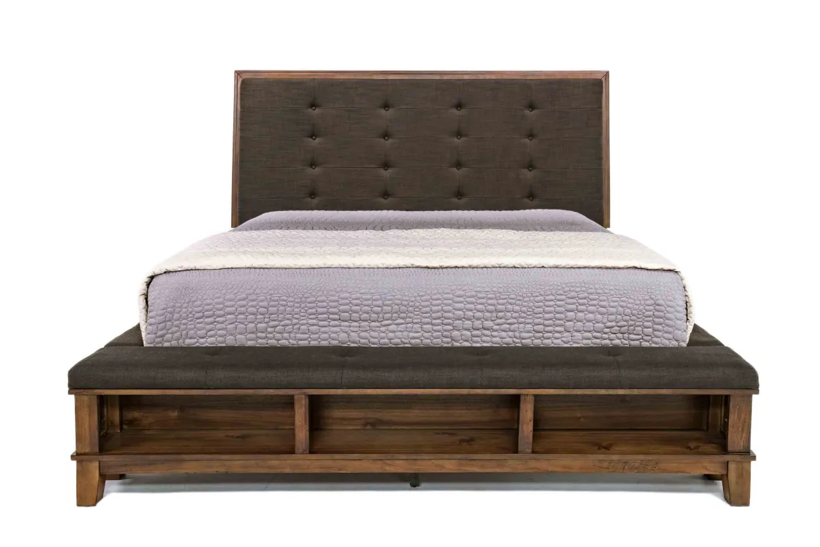 • Features durable upholstery and footboard storage area