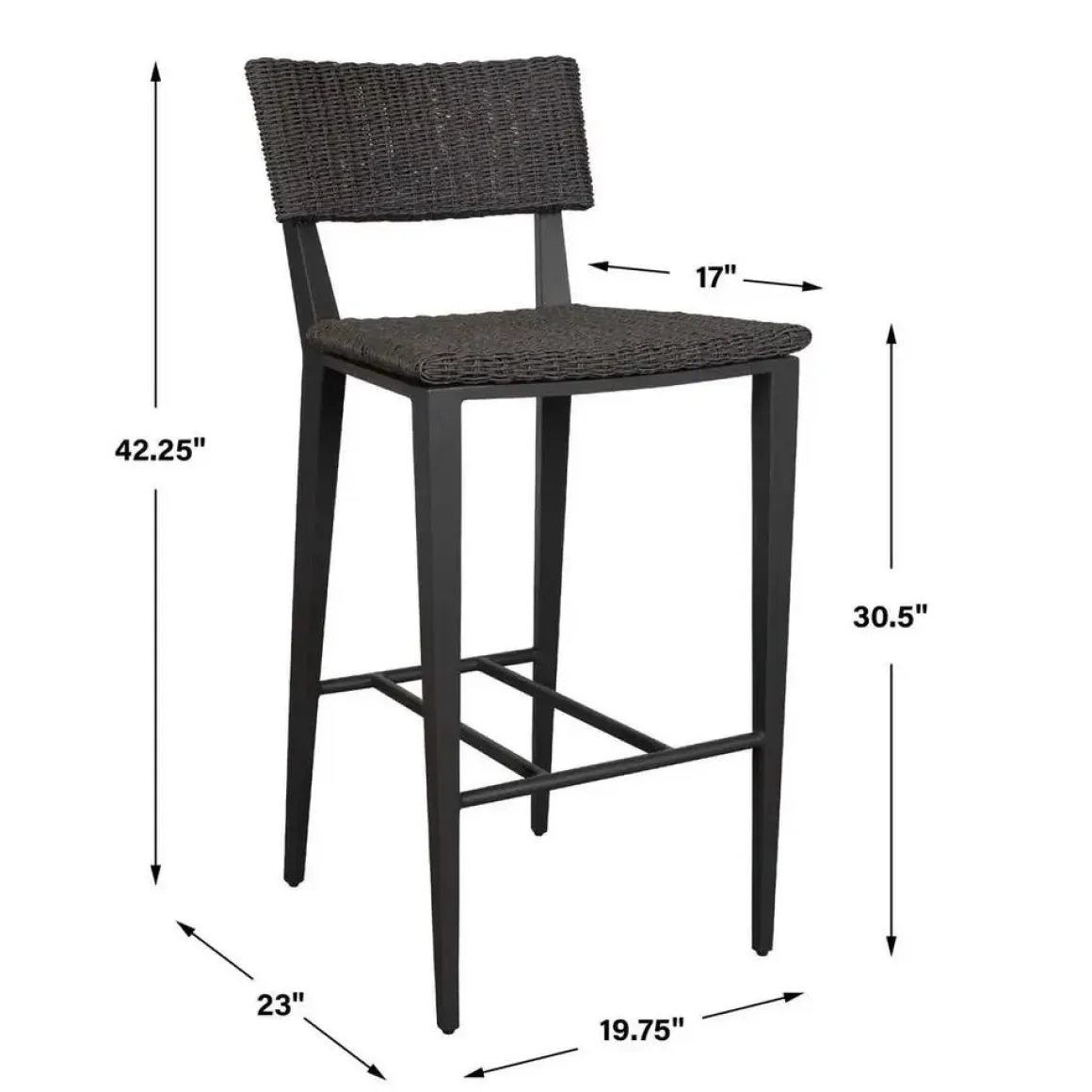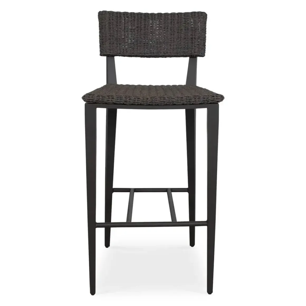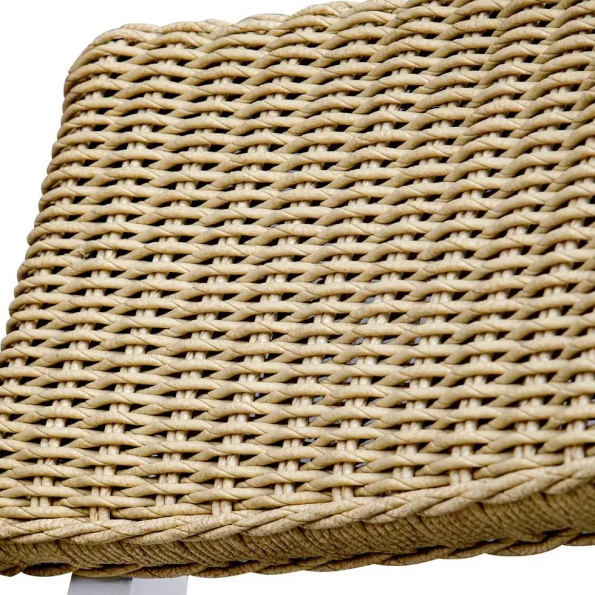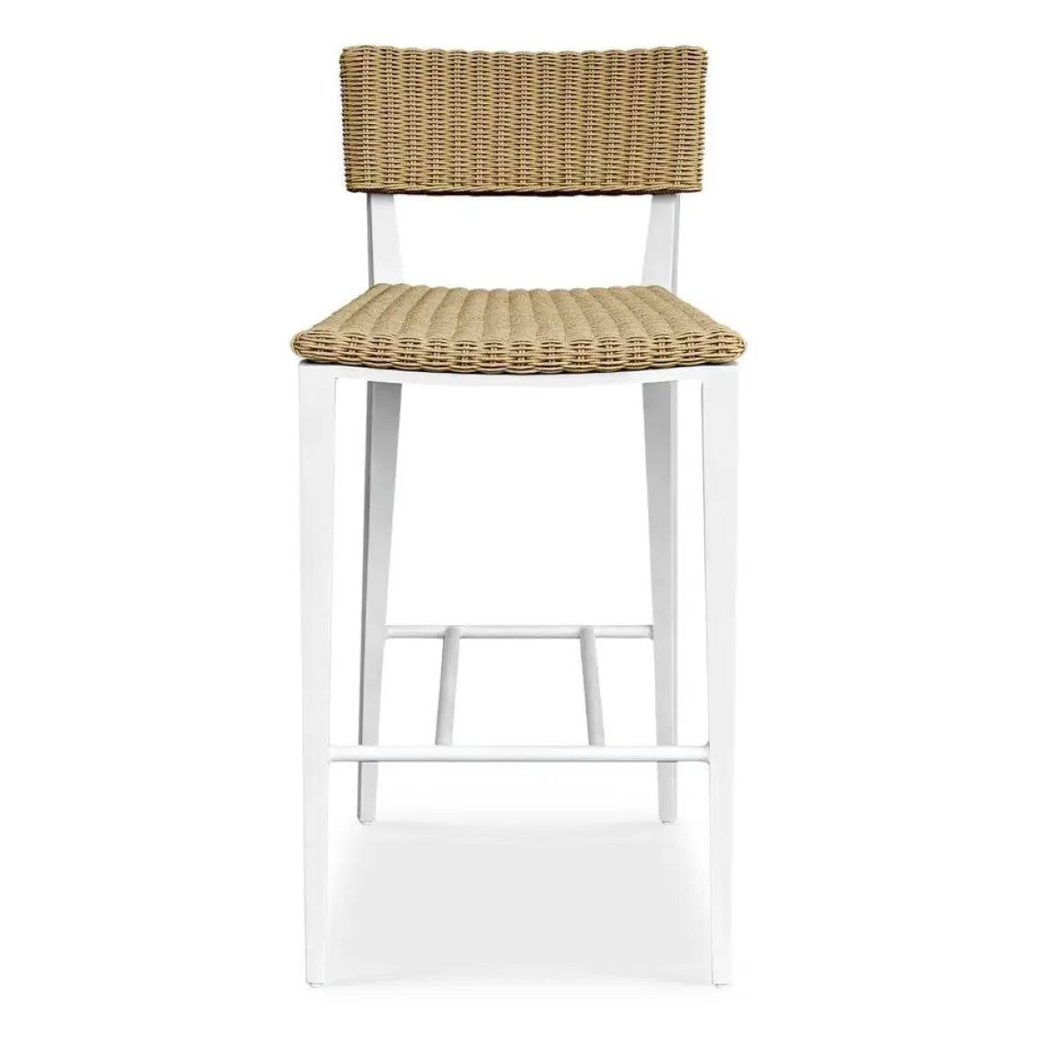 The Calbas bar stool perfectly blends style and comfort. The crisp white, powder coated aluminum frame and hand wrapped, honey toned all-weather wicker create a harmonious look that will enhance any outdoor setting.