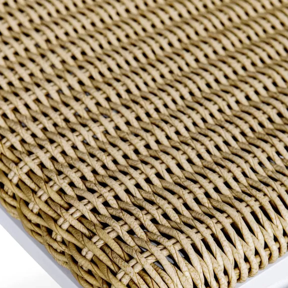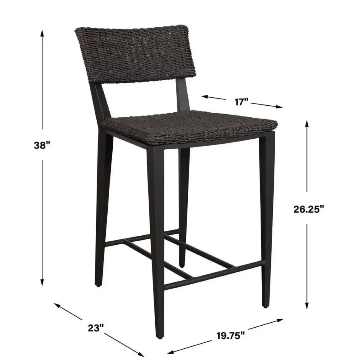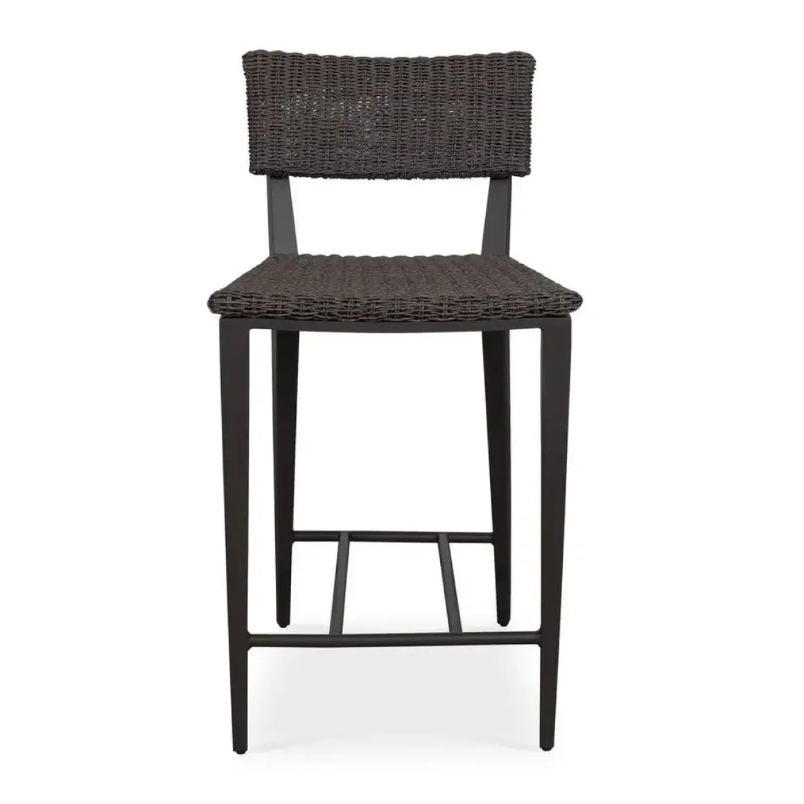 The Calbas counter stool perfectly blends style and comfort. The crisp white, powder coated aluminum frame and hand wrapped, honey toned all-weather wicker create a harmonious look that will enhance any outdoor setting.