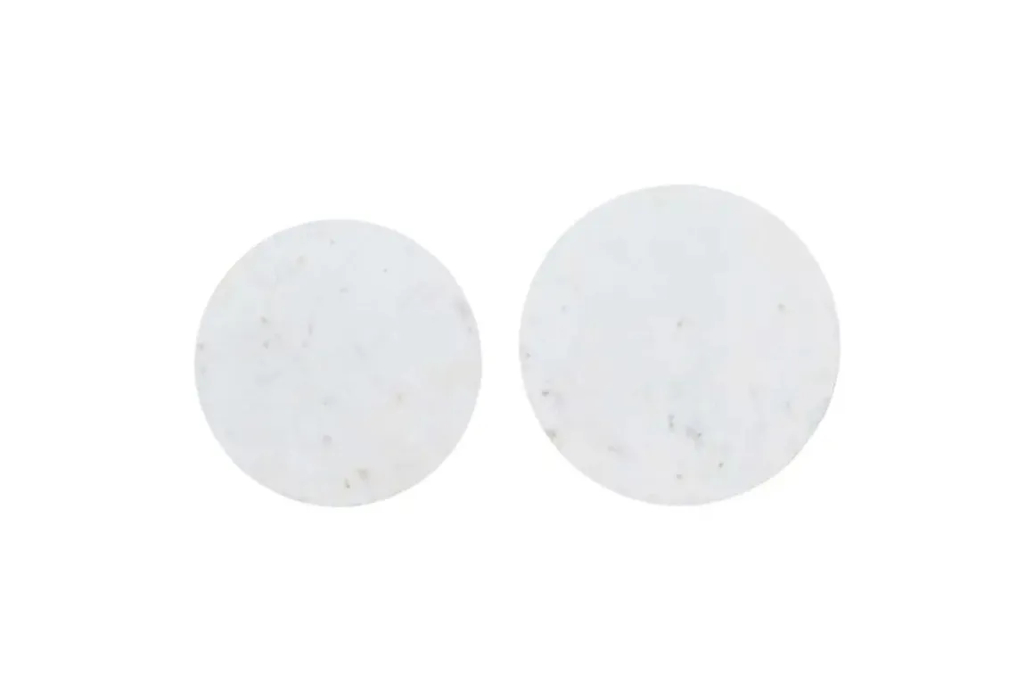 The Camille Nesting Table in White Marble, Set of 2 blends the sophisticated luxury of genuine marble with the rugged industrial feel of cast iron. These stunning round accent tables feature a sleek pedestal base and are the perfect addition to any living room, den, or any other space in your home. Product Details: • Genuine solid marble top • Cast iron slim pedestal base • Versatile white finish
