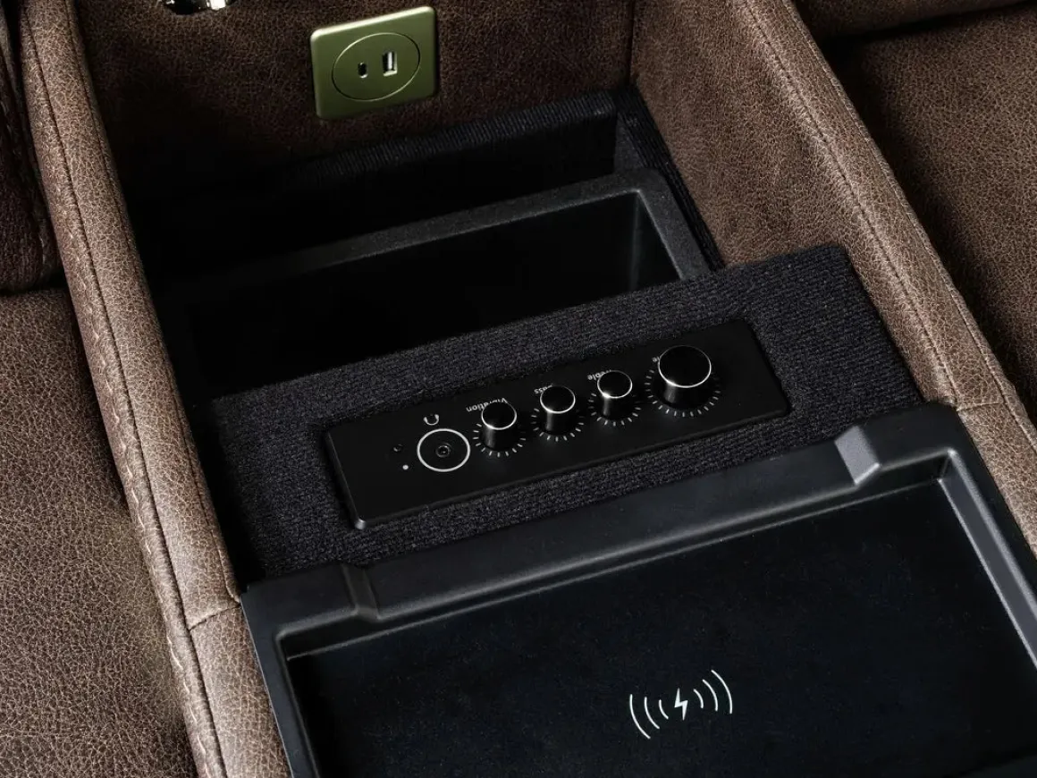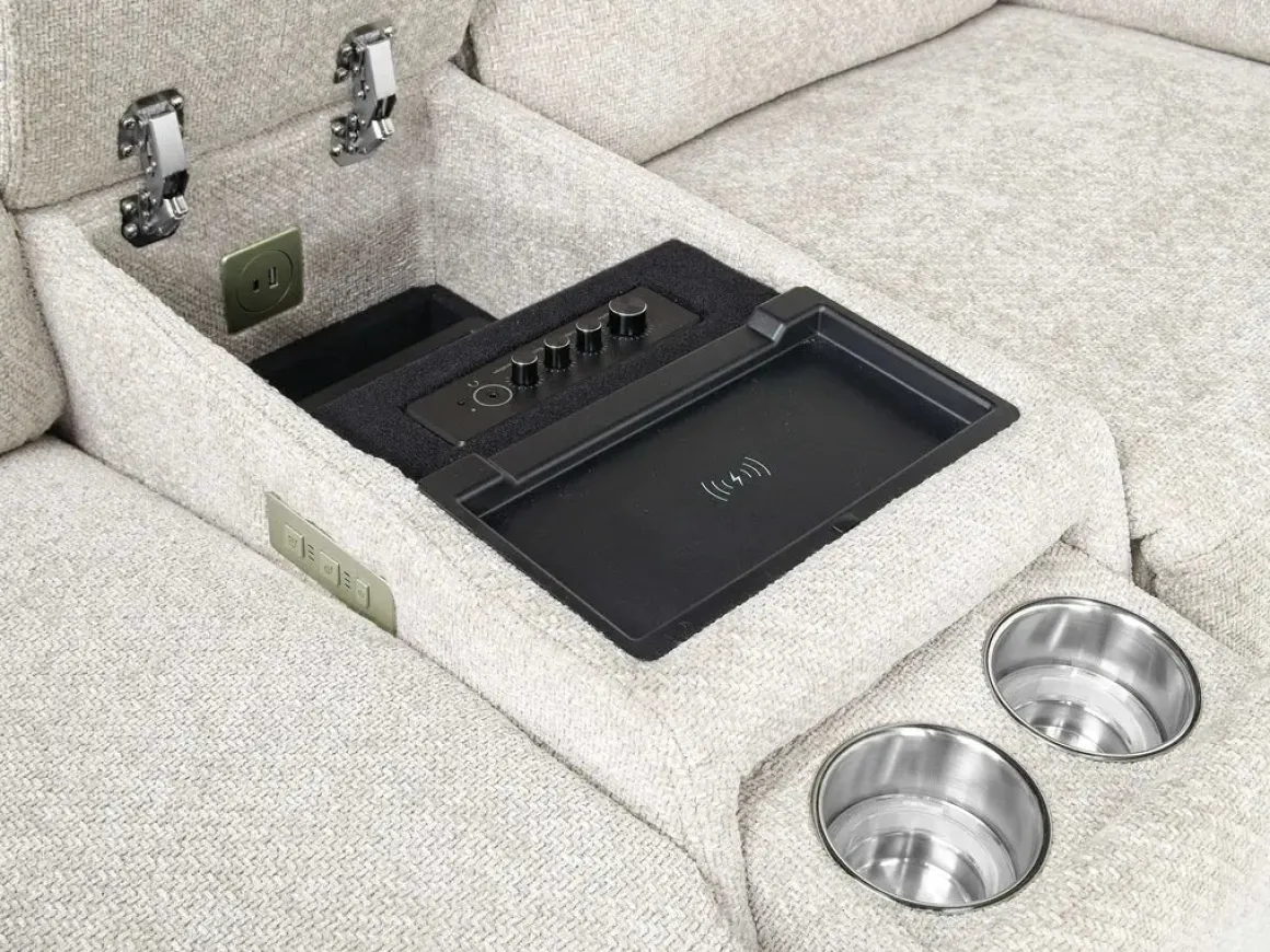 Built for shared comfort, the Cannes 3 Power Theater Console Loveseat in Jumbo Bark blends luxury features with smart functionality. Dual 3 power reclining seats offer personalized comfort, while the center console includes cupholders and hidden storage to keep essentials within reach.Product Details:• 3 power settings: headrest, lumbar, and recline• Center console with cupholders and storage• Jumbo Bark upholstery for a warm, inviting look
