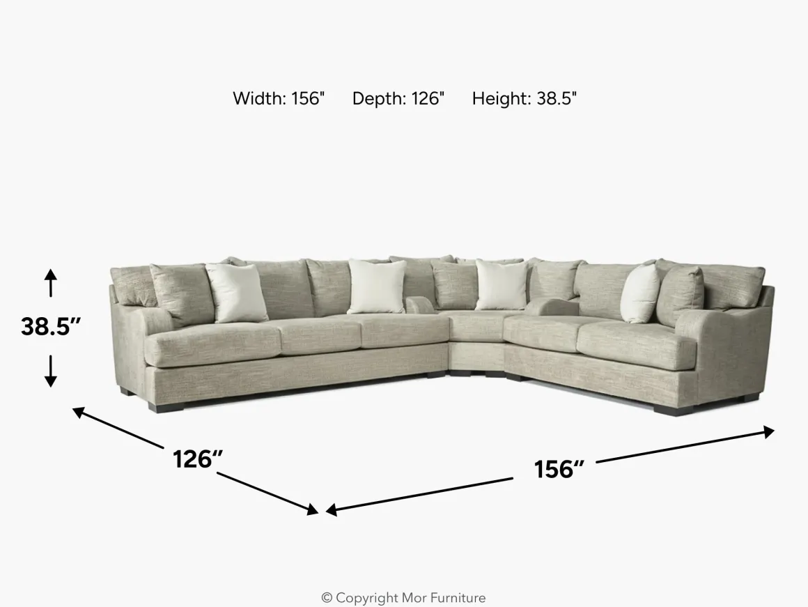 You spend a whole lot of time in your living room, but do you really love it? With the Catamaran 3 Piece Sectional in Stone, you can add an ottoman, chair, sofa, loveseat or reversible chaise with a loveseat. Shop individual pieces or buy everything you need at once to make designing your space simple.Product Details:• Chenille fabric upholstery is soft, but strong enough for kids and pets• Wood frame is kiln-dried for long-term durability• Dacron wrapped foam cushionsDimensions:• 156”W x 126”D x 38.5”HPattern placement may vary.