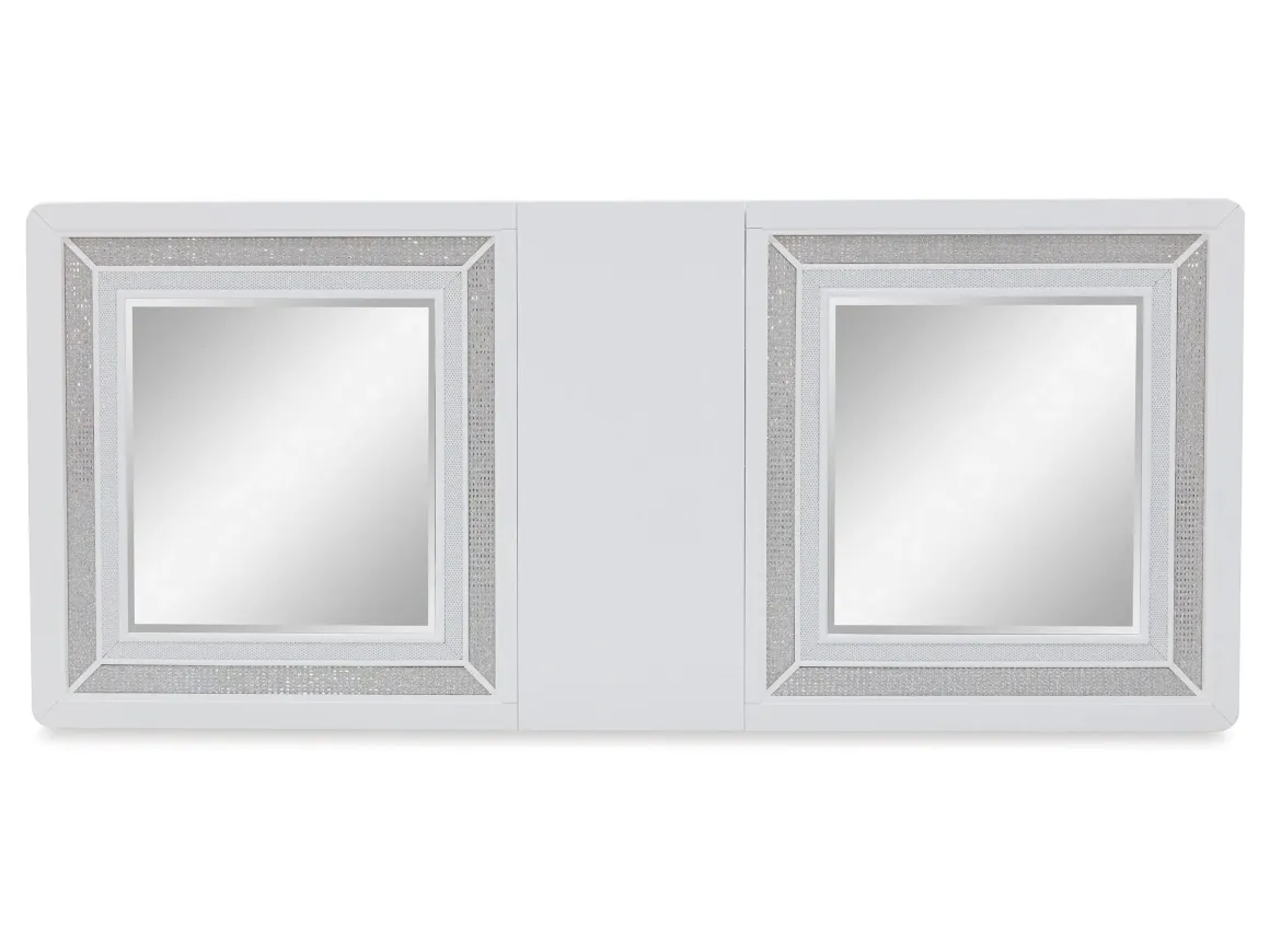 Embracing modern glamour, the Chalanna Dining Table & 4 Chairs in White is a sparkling upgrade to your dining area. A bright white lacquer finish, shimmering rhinestone accents and clear glass panels give this table plenty of polish. Plus the drop-in leaf accommodates parties of ten with ease.