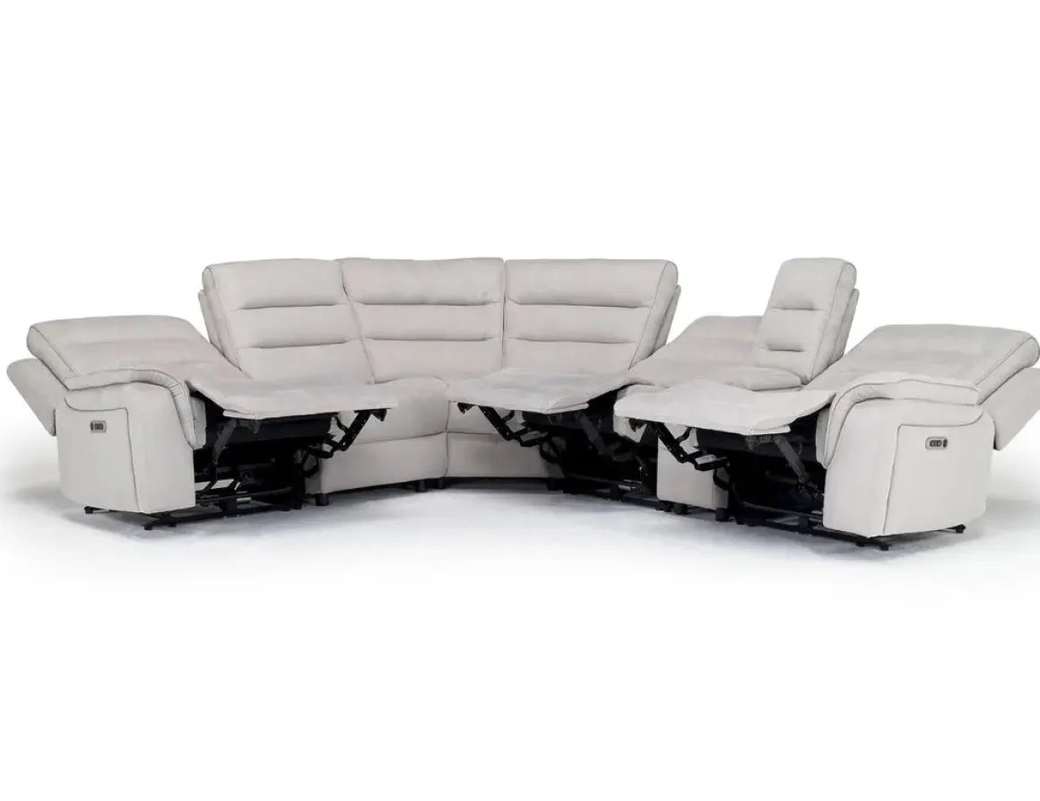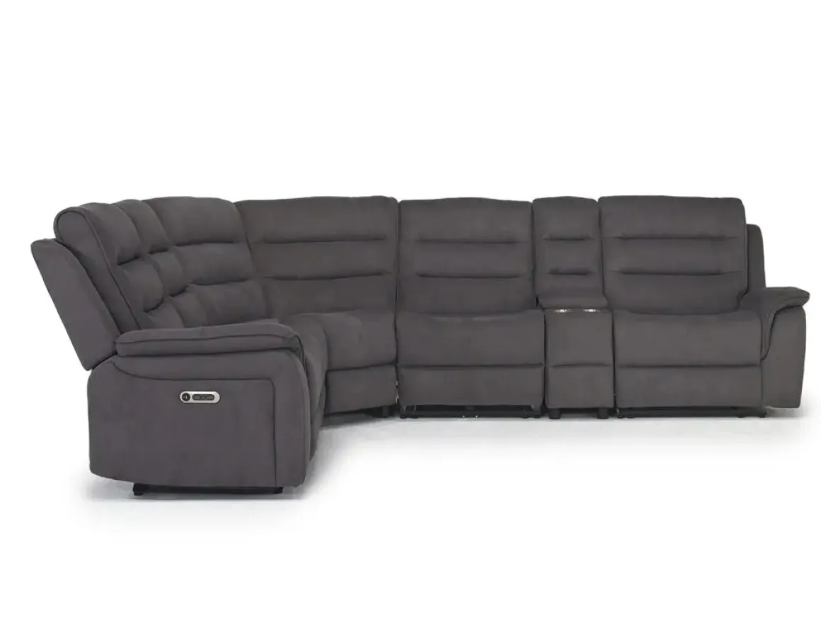 Elevate your living room experience with the Chanel 6 Piece 2 Power Sectional w/ 2 Power Armless Recliner in New Nappa Gray. This luxurious and stylish sectional is designed to bring comfort and convenience to your living space. With a single recliner and a dual power reclining mechanism, you can easily find your perfect position for relaxation. The seat composition and sinuous springs ensure optimal support. Product Details: • Features a power recliner, allowing you to effortlessly find your desired position of relaxation • The loose cushion seat type adds an extra level of comfort • With a built-in USB port, you can conveniently charge your devices while enjoying your downtime
