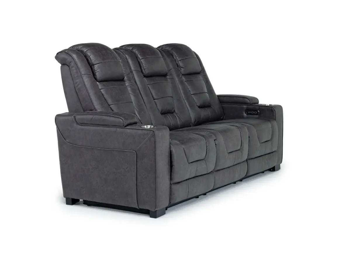 Experience ultimate relaxation with the Cody 2 Power Sofa in Gray. This sofa features dual power reclining mechanisms, allowing you to adjust the headrests and footrests to your preferred positions. Upholstered in soft gray fabric, it offers comfort and a contemporary look to enhance your living space. Product Details: • Dual power reclining for personalized comfort • Soft gray fabric upholstery • Contemporary design