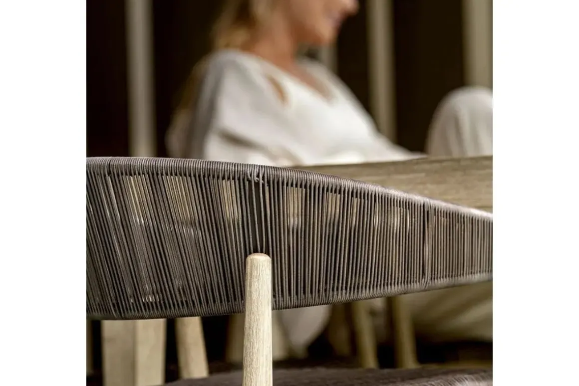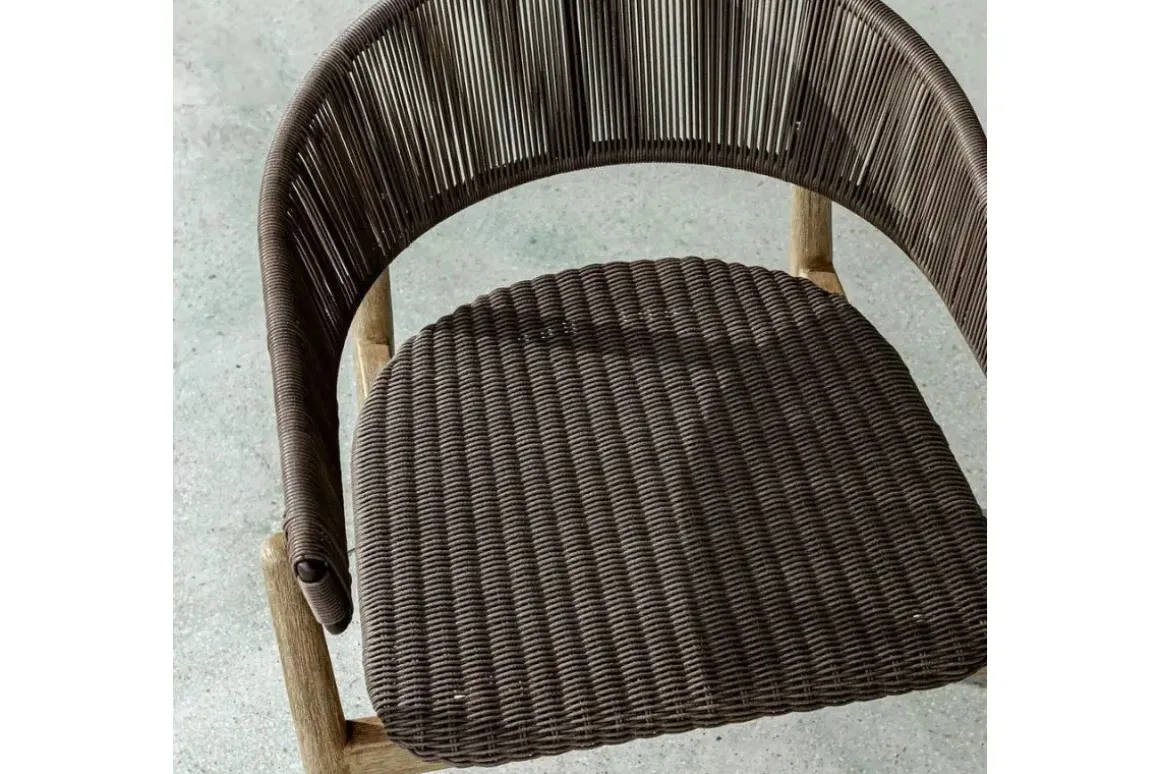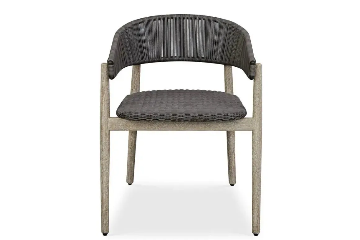 The Dermott dining chair is built to last and designed to impress. The sturdy mahogany wood frame in cerused wheat is complemented by a comfortable all-weather wicker seat and backrest in java.