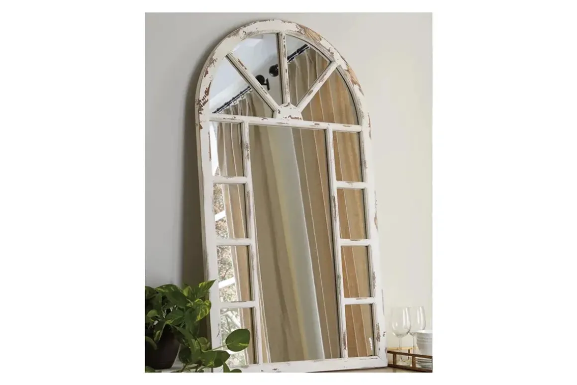Use this Divakar Accent Mirror in Antique White to finish any room in your home. The distressed, antique white paint looks great with any color. It will look amazing in your foyer, hallway, living room or kitchen. If you like Bohemian or ”chic shabby” styles, this piece is the ultimate finishing touch.