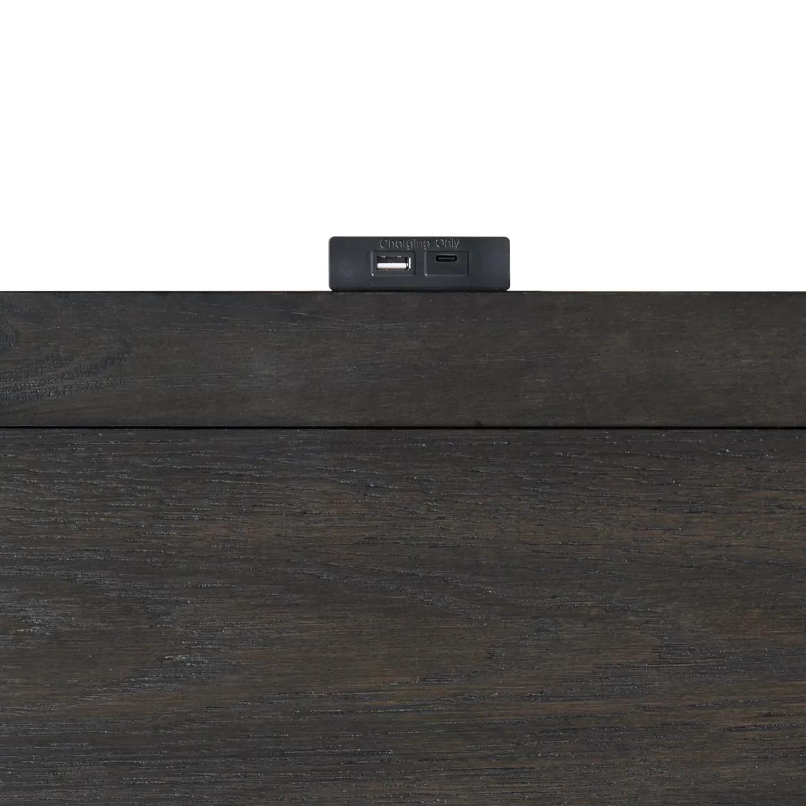 Redefine your sleeping space with the Easton Upholstered Storage Bed, Dresser, Mirror & Nightstand in Natural, CA King size. Crafted with rubberwood solids and oak veneer, the ensemble exudes durability and charm. The coordinating nightstand and dresser provide ample storage space with their English dovetail joint construction and smooth side-mounted ball-bearing glides. With a USB port for added convenience, this set elevates your bedroom with its modern appeal and smart design. Product Details: • The bed features two drawers • Six-drawer dresser and two-drawer nightstand • Luxurious mirror made of glass and solid wood