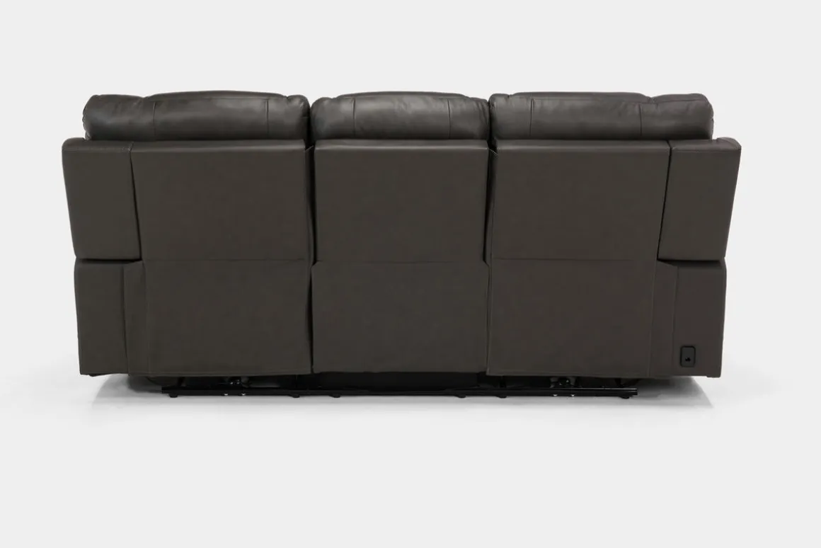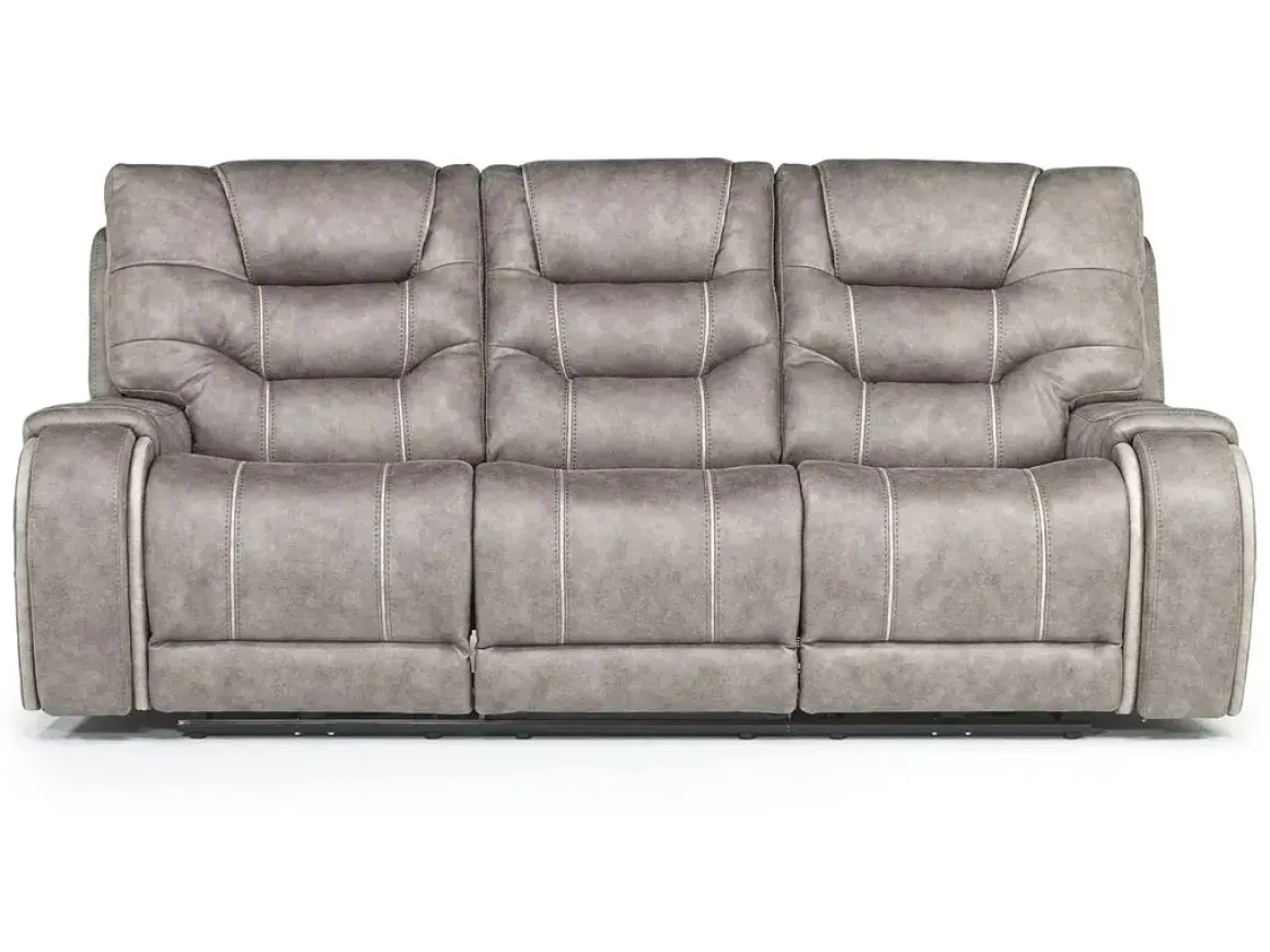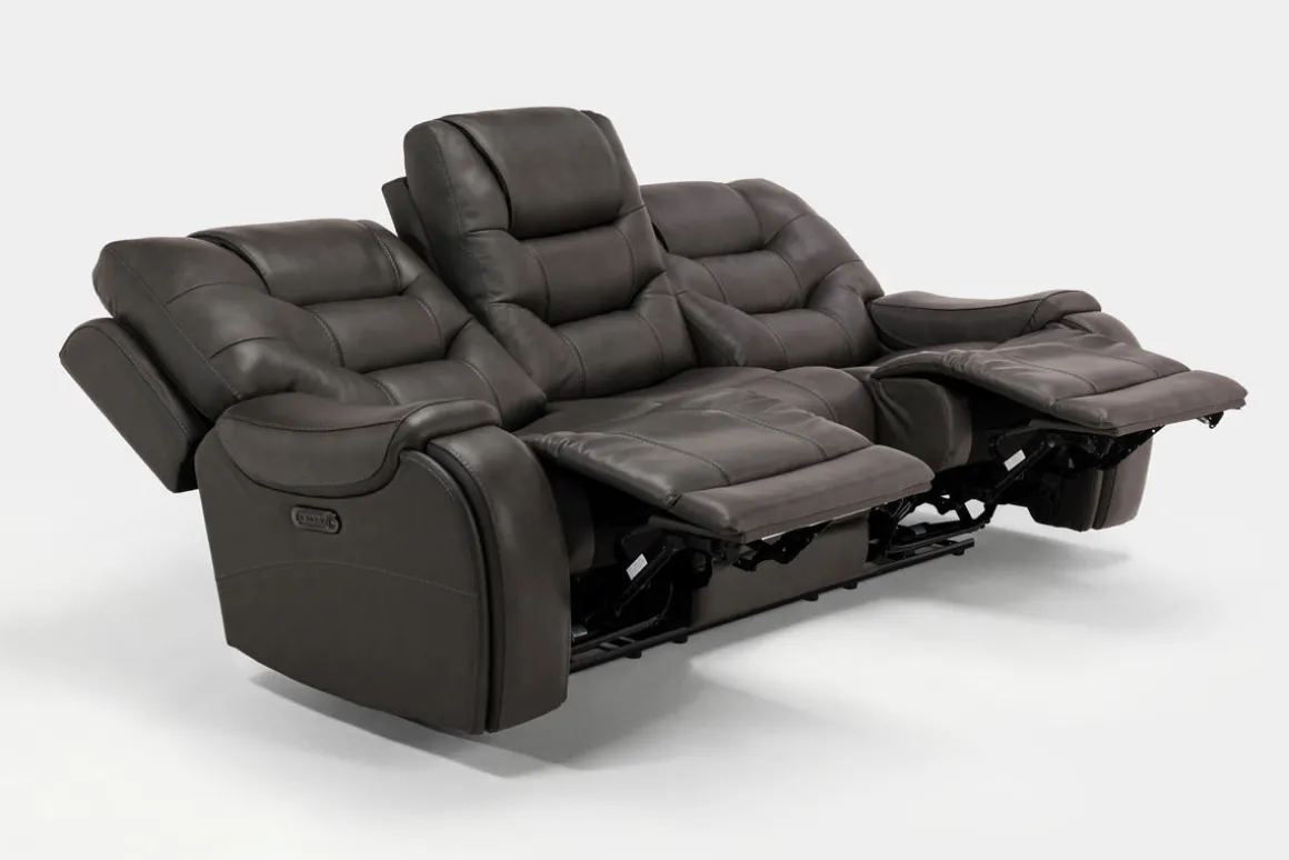 The Estilo 2 Power Sofa in Canyon Gray offers the ultimate in comfort and style. This luxurious sofa features two power recliners and a stationary middle seat. In addition, the plush, cushioned seats, and backrests provide unparalleled comfort. This reclining sofa is perfect for family movie nights, entertaining guests, or relaxing after a long day.