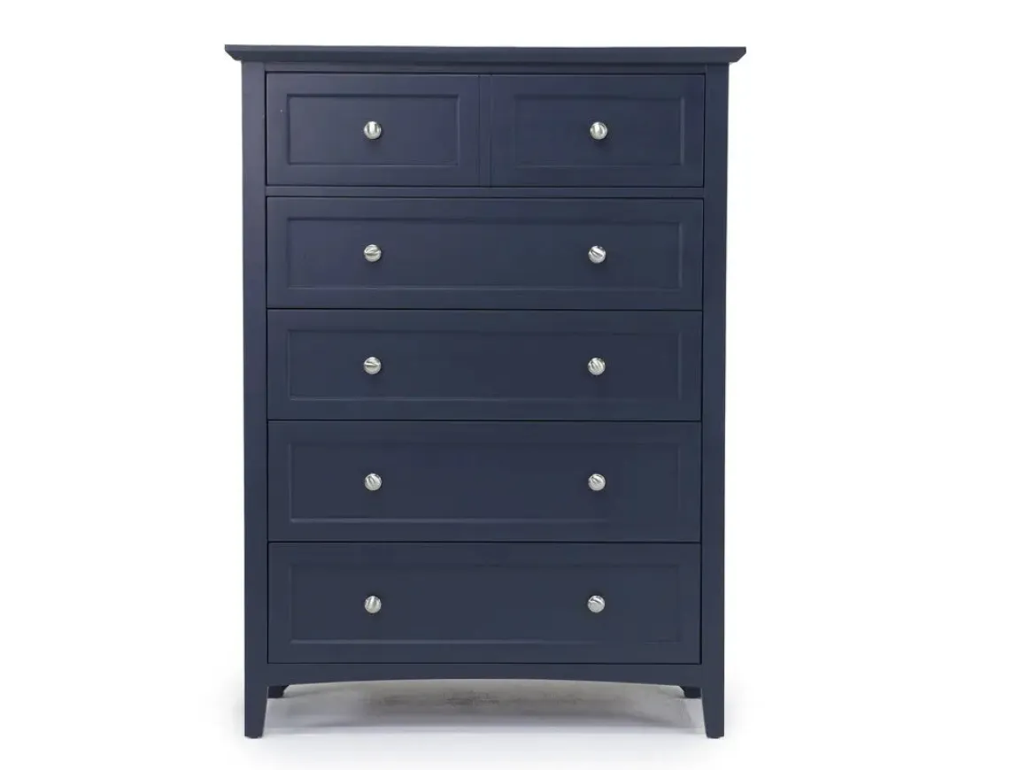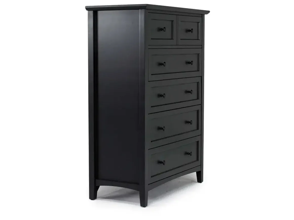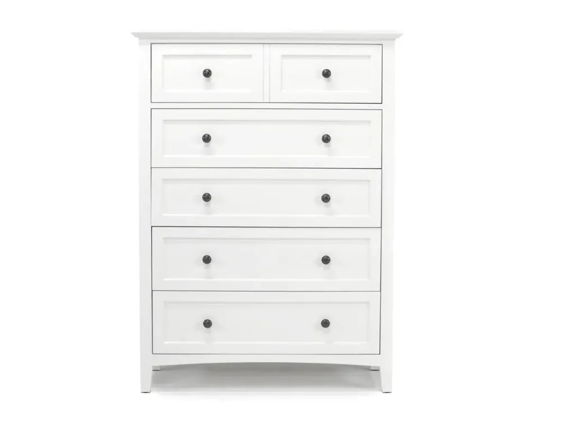 Boasting classic shaker-style drawer fronts, the Grace Chest in Elephant Gray is a timeless piece that combines crisp lines and an elephant gray finish that creates a unique style that blends well with a variety of decor styles, from modern to farmhouse and everything in between. This five-drawer bedroom chest boasts gently tapered legs, beveled floating tops, and smooth black hardware to finish the look.