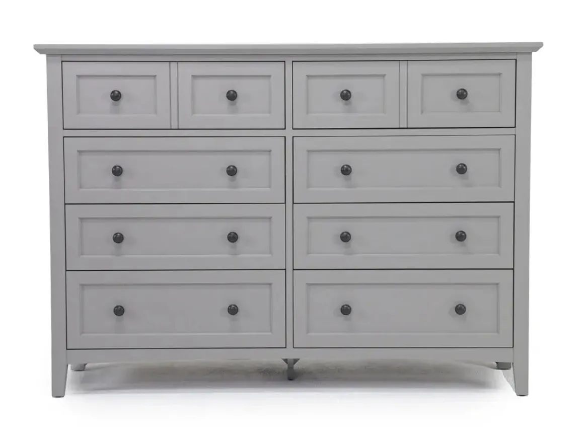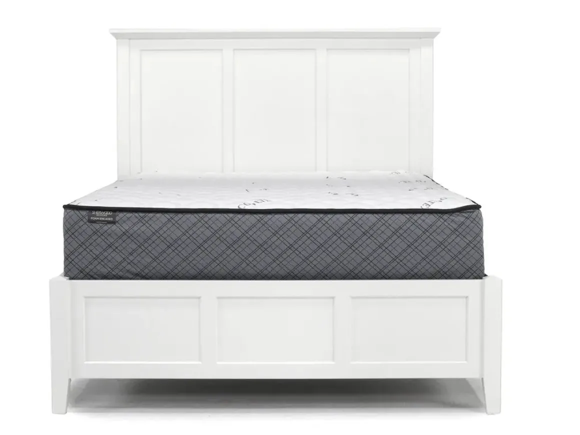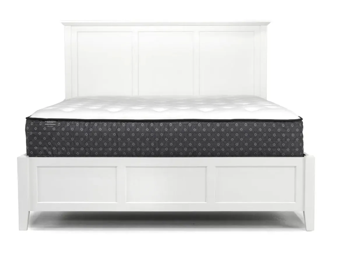 Create a chic and functional bedroom with the Grace Panel Bed, Dresser, Mirror & Nightstand in Snowfall. This set includes a nightstand and dresser for ample storage space. The crisp snowfall finish adds a touch of elegance to your room while the panel headboard provides sturdy support for countless nights of peaceful sleep.Product Details:• Includes 1 nightstand, 1 dresser, 1 mirror, and frame for bed• Made from durable solid wood for lasting quality • Classic panel headboard design for a timeless look