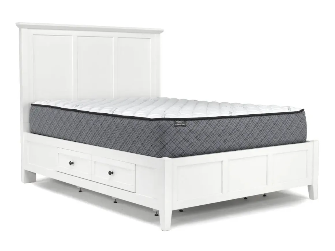 Transform any bedroom in your home into a timeless masterpiece with the Grace Storage Bed, Dresser, Mirror & Nightstand in Snowfall, Full. Stylish and versatile, this four-piece bedroom set works with almost any decor. Featuring crisp lines and a shaker-inspired design, this set features a modern white finish with a hint of gray that makes it utterly charming.