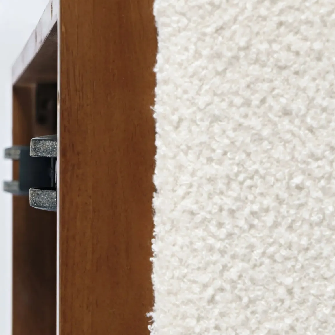 Elevate your living space with the Hudson Ottoman, seamlessly combining form and function. This versatile piece offers comfort and style, with smooth-rolling casters for mobility and a sliding walnut table that adds visual interest while providing a stable surface for display and storage. The wood-toned base complements the beautiful veneer, and the stain-resistant, Sherpa-style fabric ensures durability and texture. The Hudson Ottoman is the perfect choice to enhance your home’s style and comfort.