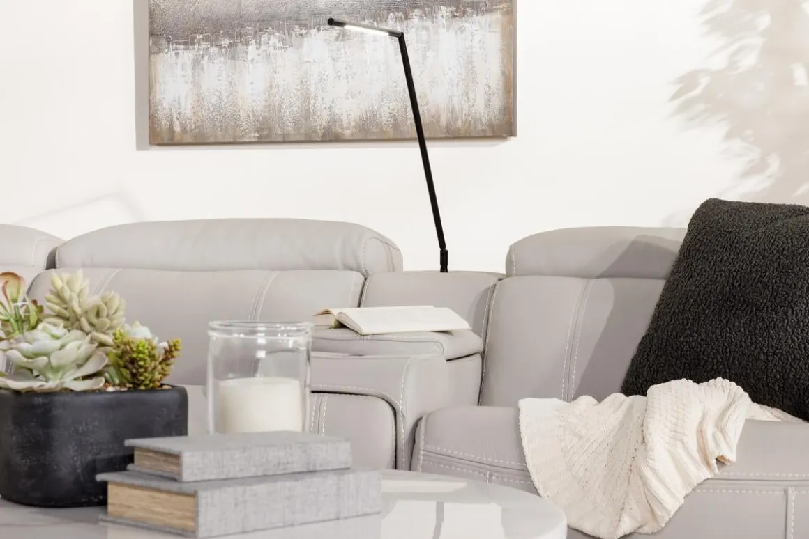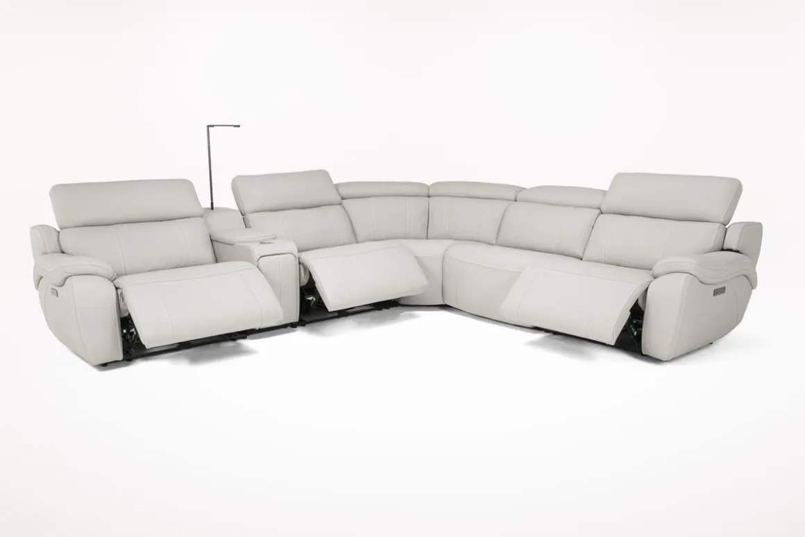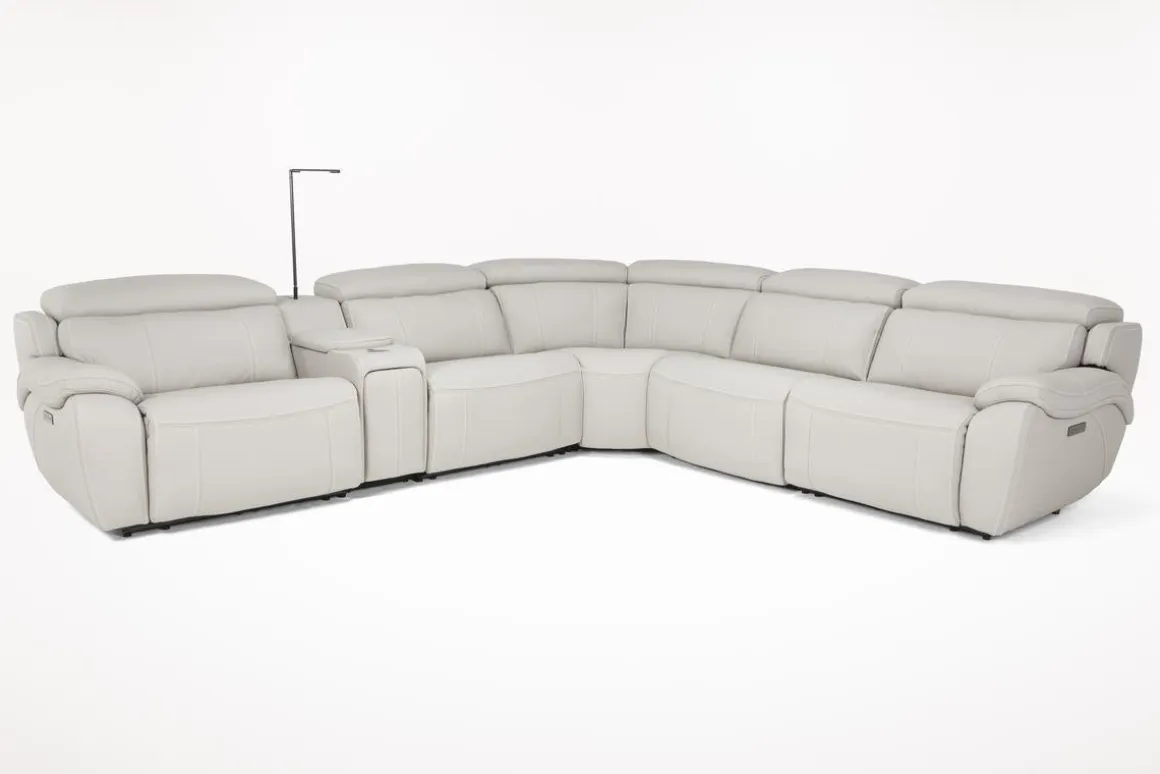 Stretch out and settle in with the Imperial 6 Piece 2 Power Sectional w/ 2 Power Armless Recliner in Blanca Light Gray Leather—a spacious, family-friendly centerpiece designed for modern comfort. This sectional features dual power reclining with head and foot adjustability, so everyone can find their perfect position. The two armless recliners blend seamlessly into the layout, offering extra seating without sacrificing style. Wrapped in soft, light gray leather, the look is clean and contemporary, ideal for open-concept living rooms or cozy family dens. Whether you’re hosting guests or enjoying a quiet evening, this sectional delivers comfort, convenience, and timeless appeal.