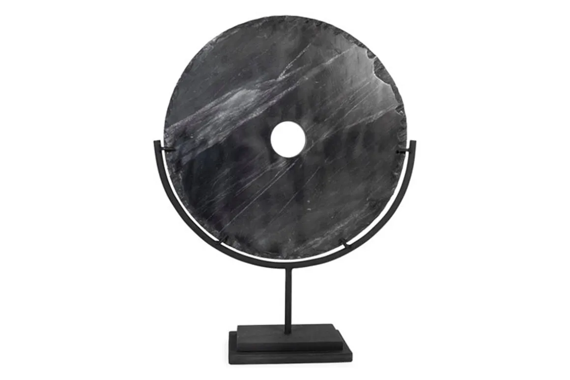 Add intrigue to your home or office decor with this marble disc Jillsen Sculpture in Gray secured in a black metal frame. A fabulous accent piece for your hallway table, living room coffee table or office desk, this sculpture excels in modern or transitional elegance.