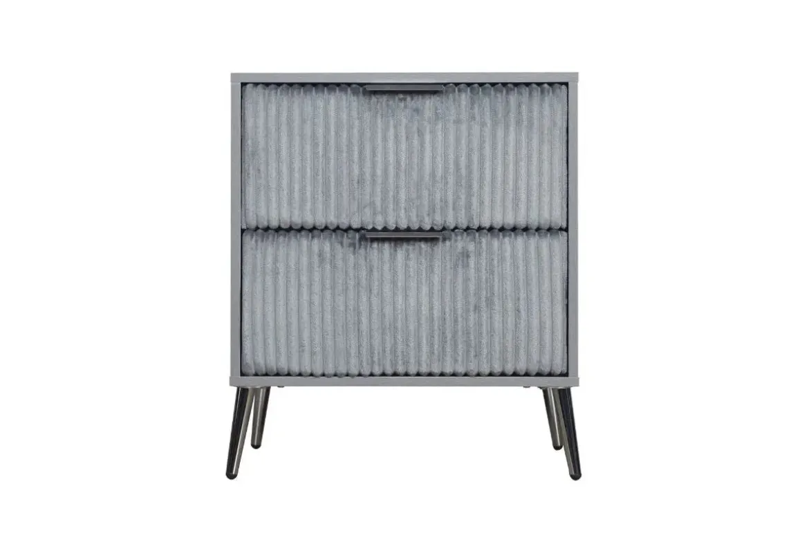 Bring style and functionality to your bedroom with the Kailani Nightstand in Gray. This nightstand features a modern design with clean lines and a beautiful gray finish. The two spacious drawers provide plenty of storage space for all your bedtime essentials. The drawers are made of durable wood and feature full extension drawer glides for smooth and easy opening and closing. The drawer joint construction is English dove tail, ensuring the strength and stability of the nightstand.Product Details:• The frame is constructed from MDF• The legs are made of metal and are tapered• The tabletop is made of laminate