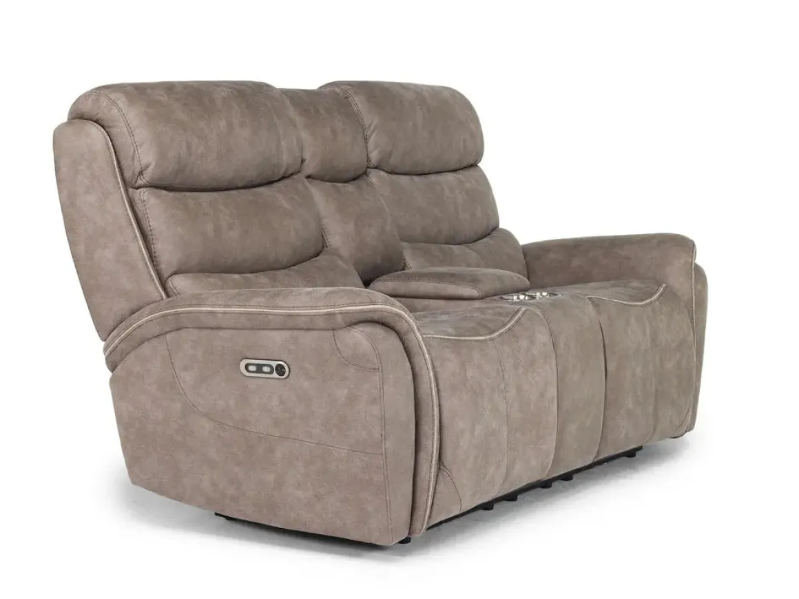 The Kamari 2 Power Console Loveseat in Gray offers premium comfort with the touch of a button. Designed with dual power reclining, this loveseat allows you to independently adjust the headrests and footrests for a personalized seating experience. The center console features convenient cupholders and storage, making it an excellent addition to any entertainment area. Wrapped in soft gray upholstery with plush padding, this loveseat seamlessly blends modern style with everyday functionality, ensuring lasting relaxation and support.Product Details:• Dual power reclining with adjustable headrests and footrests• Built-in center console with storage and cupholders• Soft gray upholstery for a sleek, contemporary look