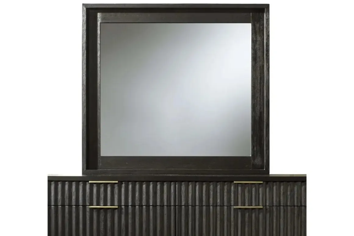 Complement your bedroom or living space with the Kentfield Mirror in Black Drifted Oak. This striking mirror offers a combination of rustic charm and modern sophistication. The mirror’s frame is crafted from oak wood, showcasing the natural beauty of the wood grain. The exterior black finish adds a touch of elegance and creates a bold statement. With dimensions of 42 inches wide and 38 inches high, this mirror is perfect for hanging above a dresser or console table. This mirror attaches to its coordinating dresser. Additional hardware may be needed for wall installation. Product Details: • The mirror features a sturdy wood frame • The black drifted oak finish adds a rich, dark tone to the mirror • Its ample size provides a clear and flattering reflection