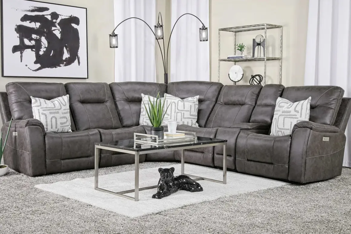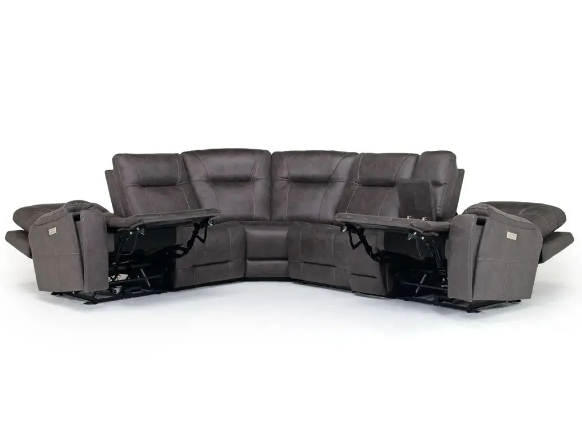 The Kingston 6 Piece 3 Power Sectional in Canyon Ocean is the ultimate blend of modern convenience and luxurious comfort. Designed with three power reclining seats, this sectional allows you to adjust your seating position effortlessly. The rich Canyon Ocean upholstery adds a contemporary touch, while plush cushions and supportive seating ensure a cozy lounging experience. This sectional offers ample space and unbeatable comfort, perfect for family gatherings or movie nights.Product Details:• Six-piece sectional with three power reclining seats• Soft Canyon Ocean upholstery for a sleek look• Plush cushions for superior comfort