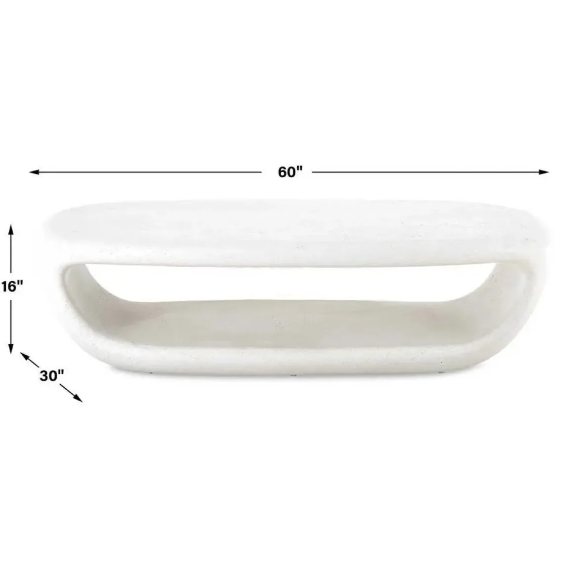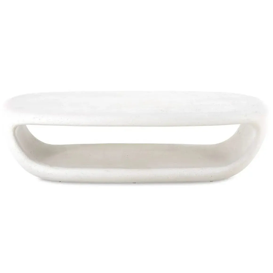 Made from glass reinforced concrete in a smooth warm white finish, this coffee table boasts a bold silhouette which incorporates a hollow center, providing ample storage. Suitable for both indoor and outdoor use.