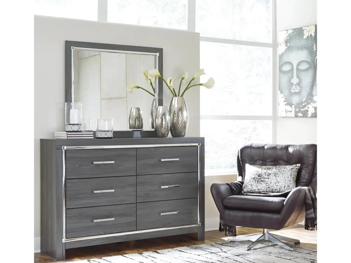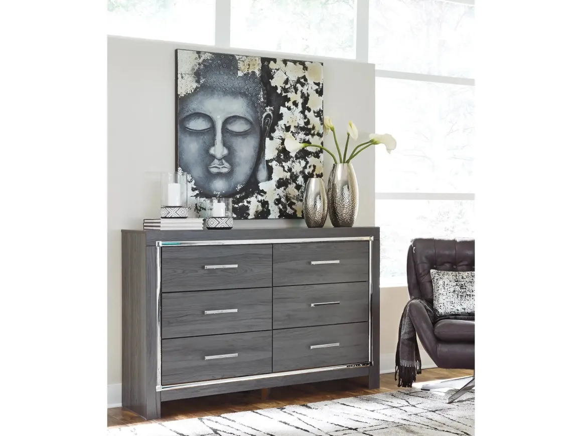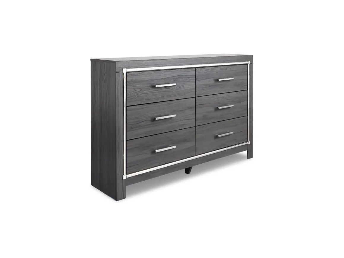 Reminiscent of Hollywood glamour of yesteryear, the Lodanna Dresser in Gray interprets luxury in a decidedly modern way. A dazzling gray finish and faceted chrome-tone accents enhance the star power. Six smooth-gliding drawers provide enough storage to appease your inner diva.