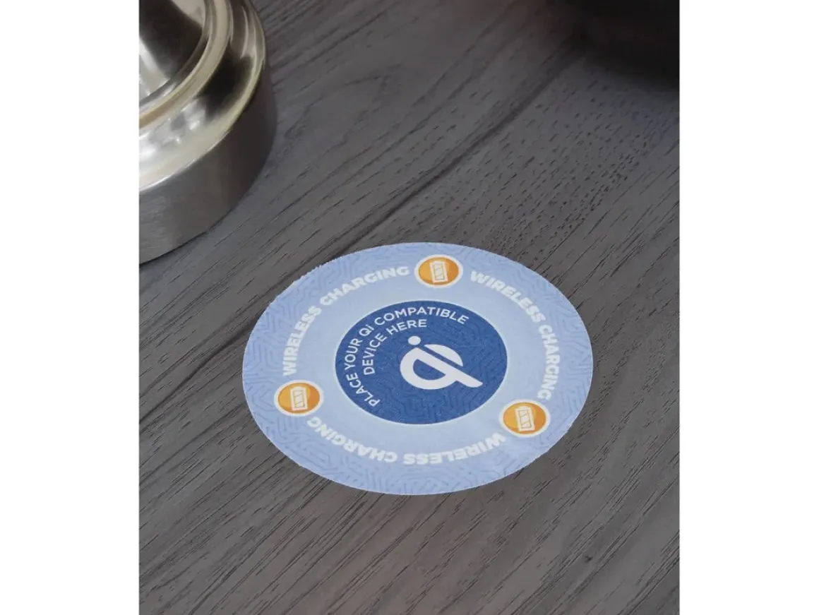 • Chic gray replicated wood grain finish with faceted chrome-tone hardware