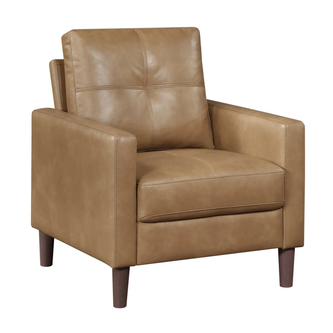 The Lois Chair in Camel Brown brings welcoming warmth and mid‑century charm to your living space with its clean lines, plush cushions, and timeless silhouette. Wrapped in soft faux leather, it offers a family‑friendly blend of style and easy comfort, while the espresso‑finished wood frame adds a sturdy, refined touch. Foam seating supported by sinuous springs ensures a smooth, supportive sit—whether curling up with a book, hosting guests, or creating a cozy corner in your home. Its versatile design fits beautifully into modern, retro, or transitional decor, making it an effortless way to elevate your room with lasting comfort and value.