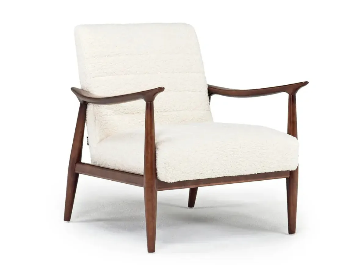 The perfect living room chair is one you can curl up in, and the Louise Accent Chair in Sherpa Gray is the perfect addition to any living room. A soft to the touch gray Sherpa fabric is draped over lush high-density foam cushions, creating for you the perfect seating experience. What really draws your eye is the unique sweeping curve both armrests possess, which is incredibly comfortable to rest your arm on.