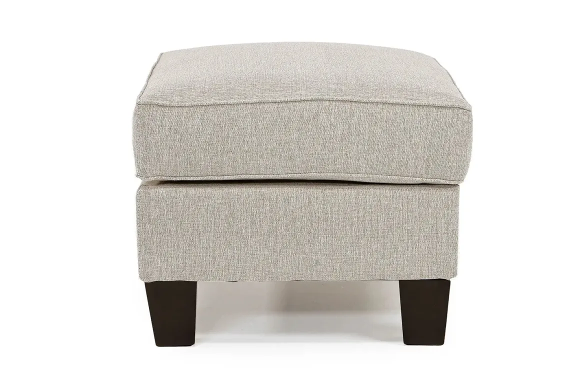 If a sleek new style is what you desire, look no further than the Lucy Ottoman in Splash Linen. With its clean lines and a decidedly contemporary profile, this charming ottoman features flat woven upholstery with plump cushioning. Its wood and spring combination design make it sturdy and comfortable. So, relax and put your feet on this lovely piece that works well in any space.