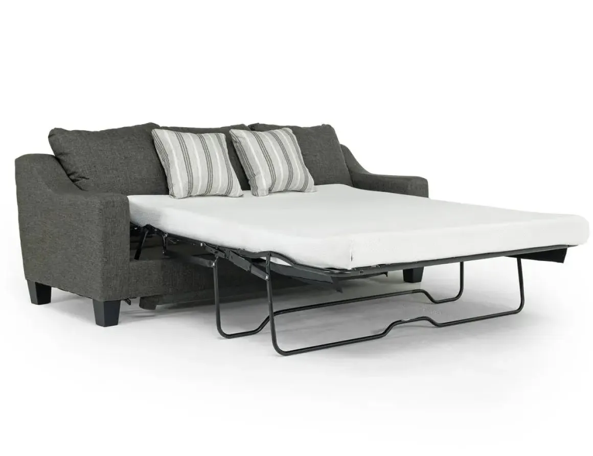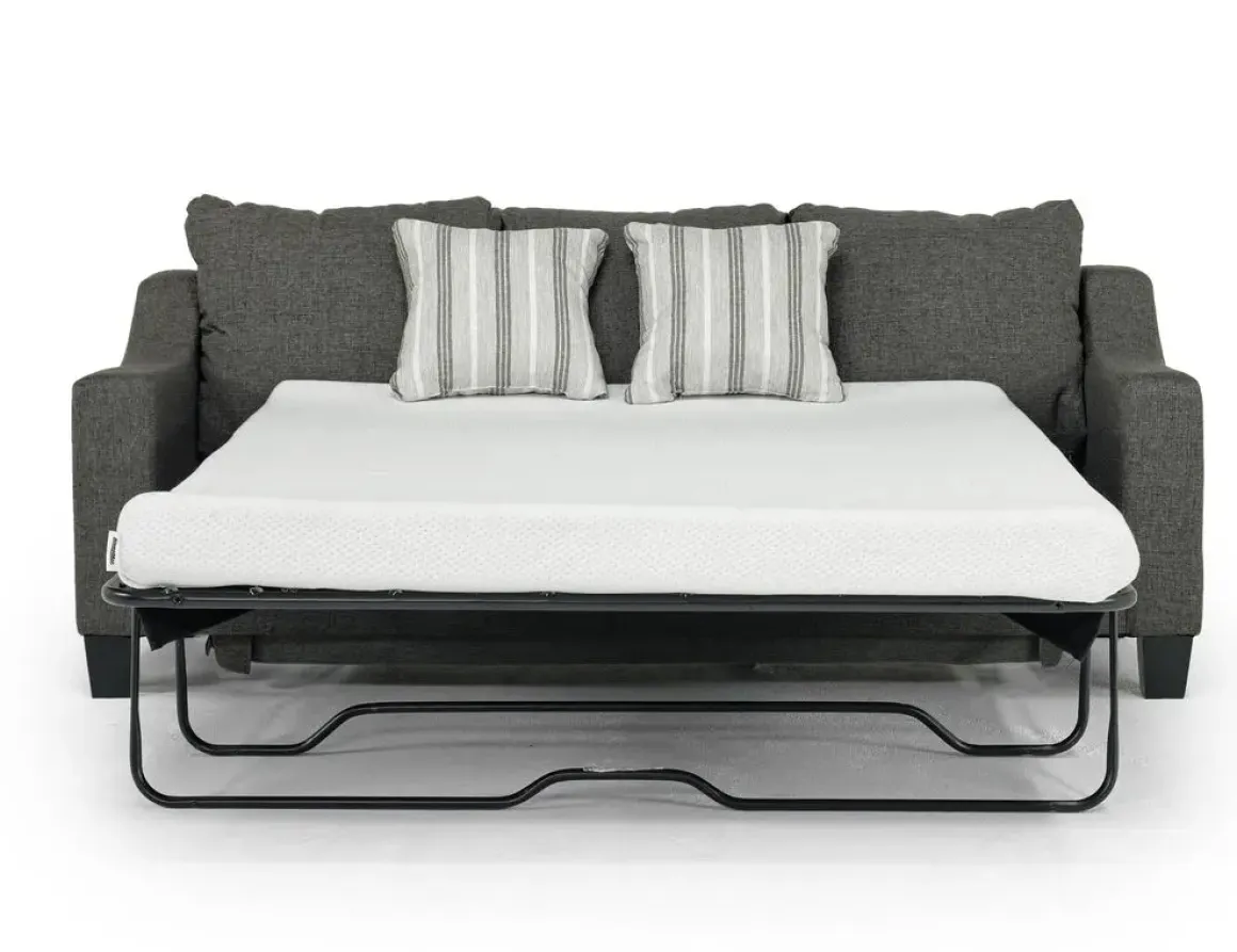 Upgrade your living room with the Lucy Queen Sleeper Sofa w/ Mattress in Splash Charcoal, combining style, comfort, and functionality in one stunning piece of furniture. With a spacious queen-size bed, this sleeper sofa provides ample sleeping space for you and your guests. The stylish splash charcoal color adds a contemporary flair to your room. The sleeper type system is designed with a convenient popup mechanism, making it effortless to switch between sofa and bed positions.