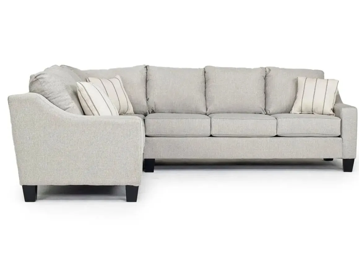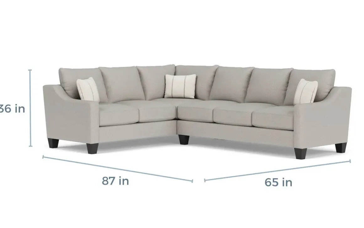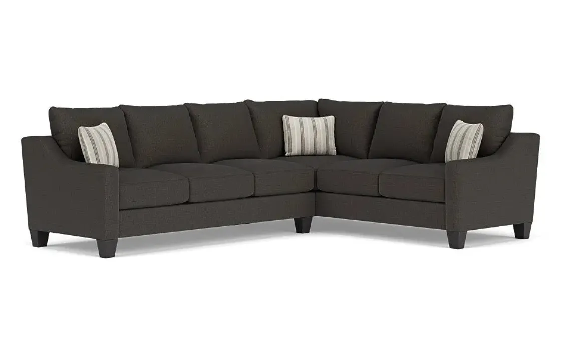 Relax in style and comfort with the Lucy Tux Sofa Sectional in Splash Charcoal, Right Facing. This luxurious and sophisticated sectional is perfect for any modern living space. Upholstered in a soft and durable Splash Charcoal fabric and featuring chunky wood feet, this sofa sectional will bring a touch of class to any home decor environment.Product Details:• Tuxedo arm design and plush cushions provide exceptional comfort and support• Made with high-quality materials and features a sturdy frame• Includes three matching throw pillows