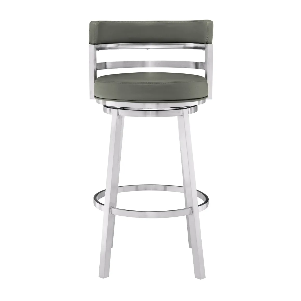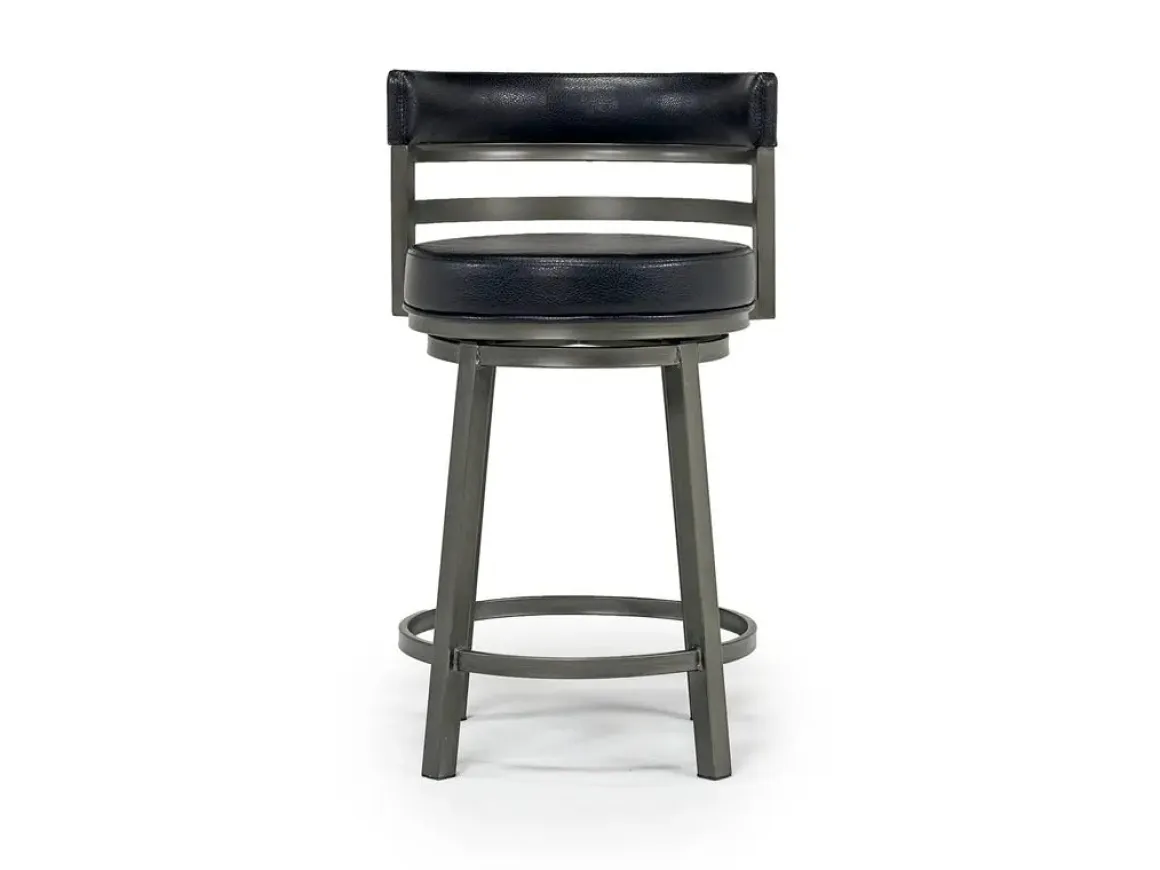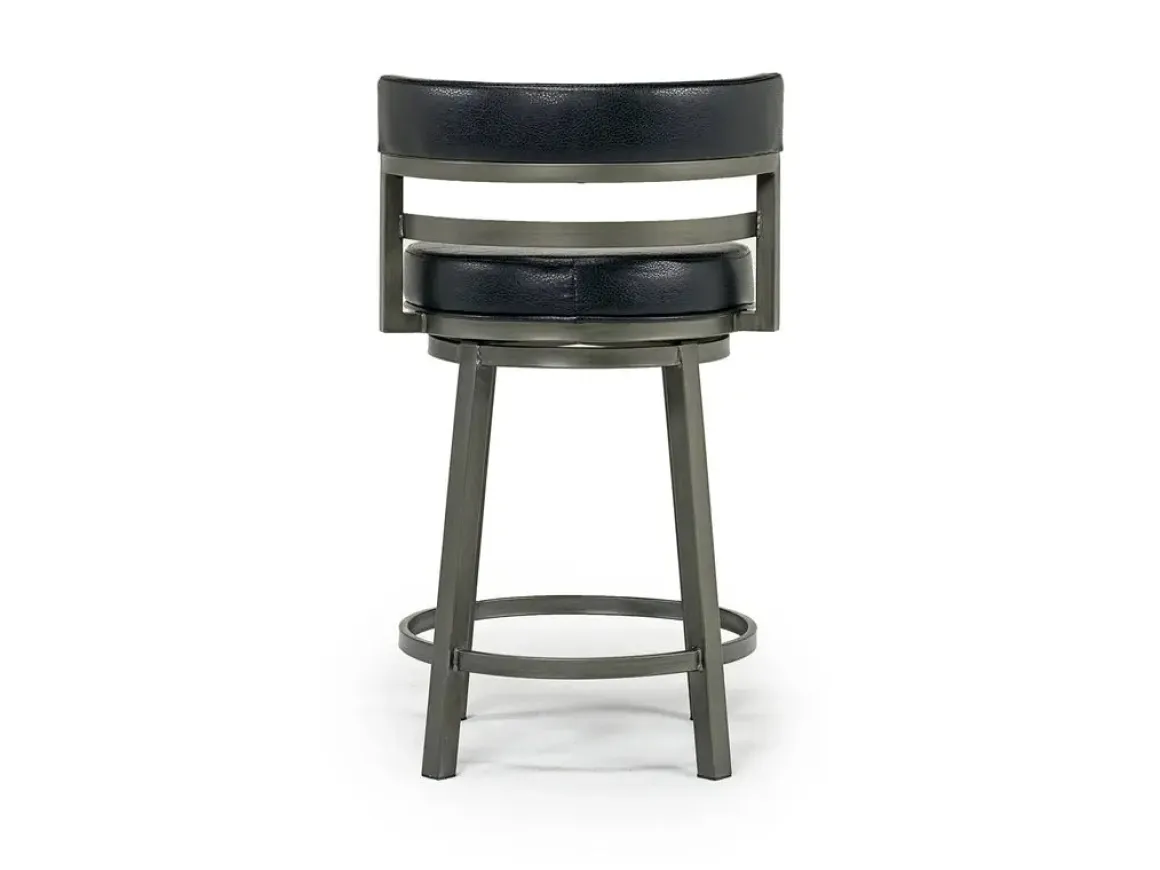 Highly recommended for any modern dining room, the Madrid Counter Height Chair in Mineral and Black, Swivel is a piece that showcases stunning craftmanship and will quickly become the favorite seat in your house. A swept back, bow of a back rest holds your lower back in perfect lumbar support. Sleek and sturdy metal legs are the epitome of sophistication and practicality. The stool has a perfectly placed foot rest that adds to the comfort.