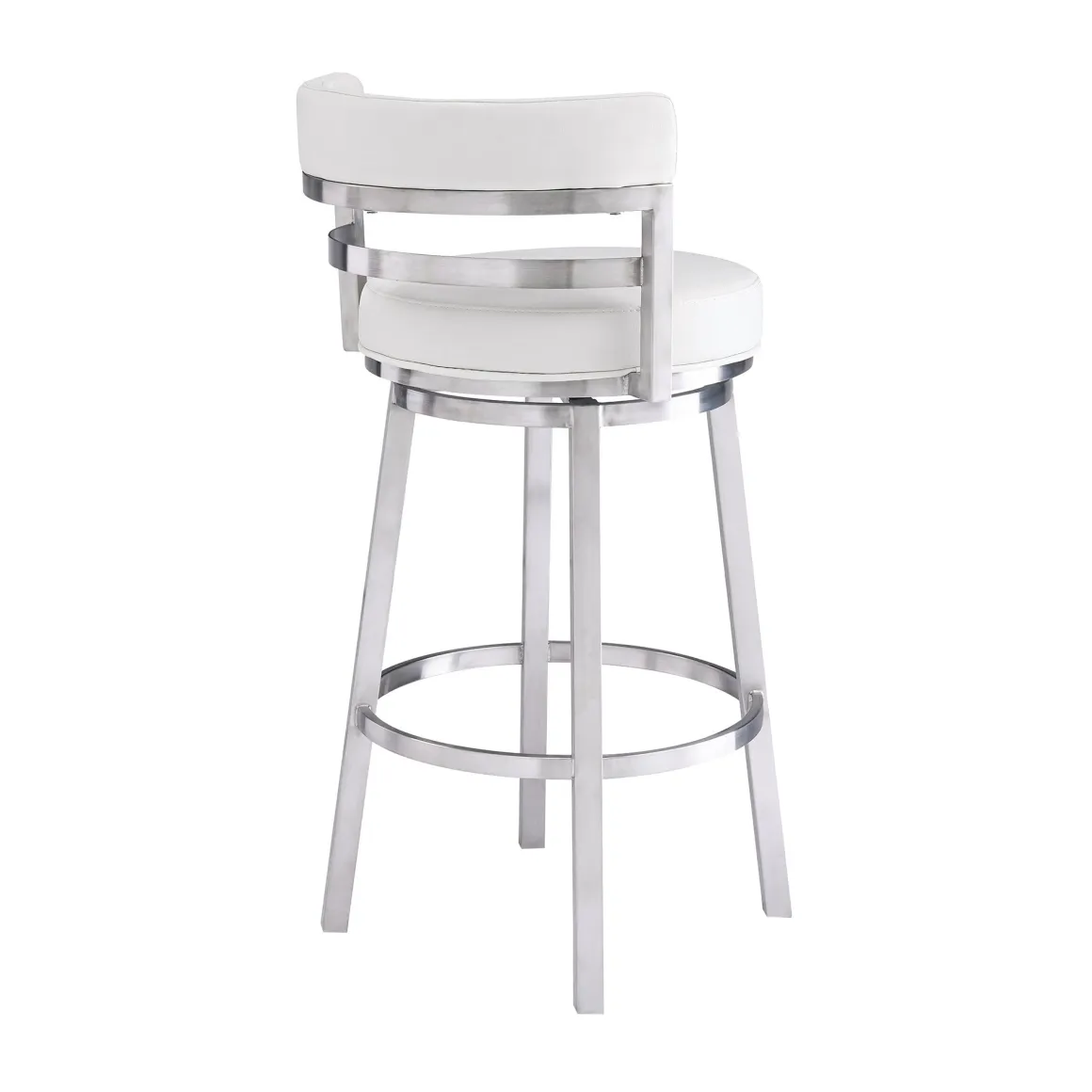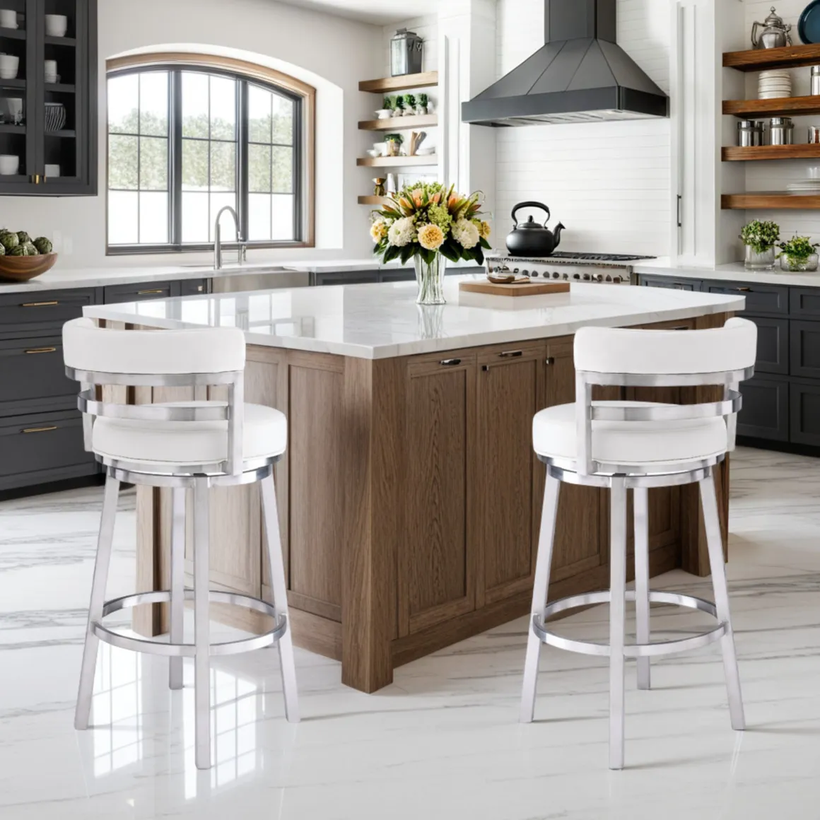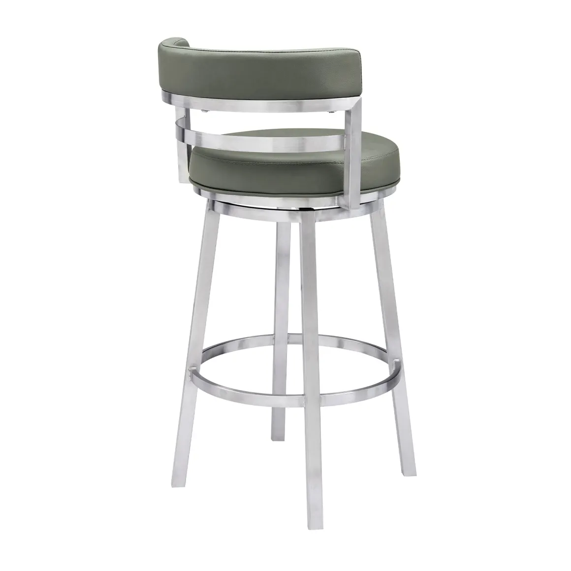 Highly recommended for any modern dining room, the Madrid Counter Height Chair in Mineral and Black, Swivel is a piece that showcases stunning craftmanship and will quickly become the favorite seat in your house. A swept back, bow of a back rest holds your lower back in perfect lumbar support. Sleek and sturdy metal legs are the epitome of sophistication and practicality. The stool has a perfectly placed foot rest that adds to the comfort.