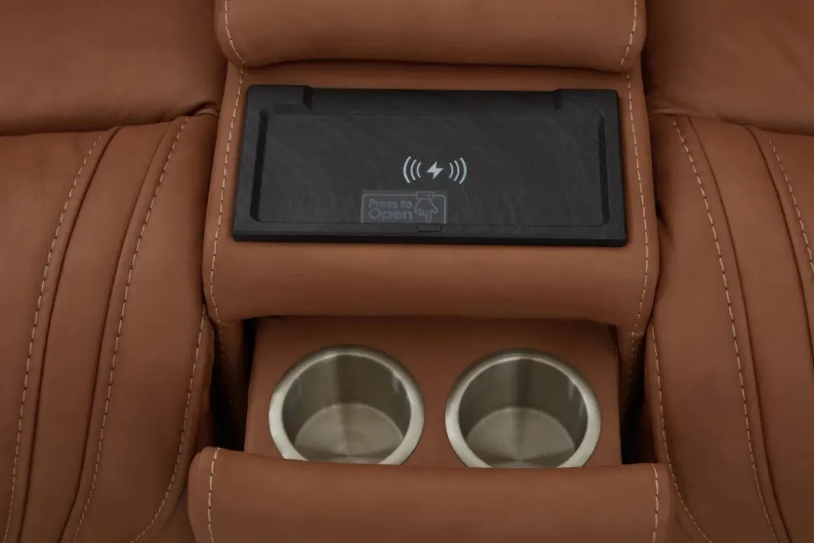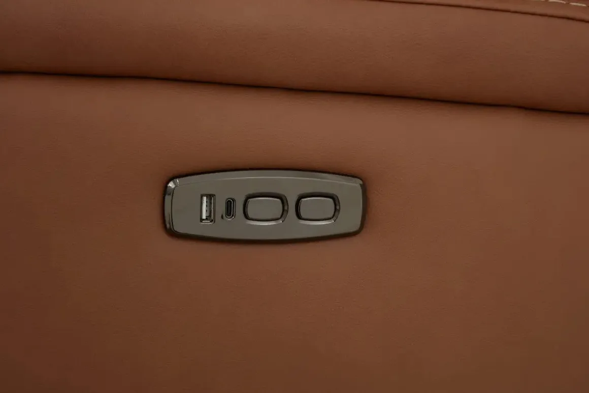 The Max 6 Piece 2 Power Sectional w/ 2 Power Armless Recliner in Aline Timber Leather is built for families who love to relax in style. Wrapped in a rich timber brown leather-fabric blend, this spacious sectional offers dual power reclining with head and foot adjustability across every seat—including two armless recliners that blend seamlessly into the layout. Foam cushions and semi-attached backs provide lasting support, making it ideal for movie nights, game days, or everyday lounging. Its transitional silhouette and earthy tone bring warmth to both casual and refined living spaces.
