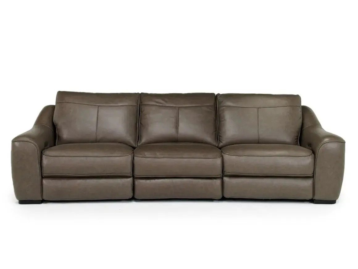 Elevate your home with the Mayflower 2 Power Sofa in Seville Umber and experience a new level of relaxation and elegance. This transitional sofa includes two power recliners for customized relaxation and an armless chair for extra seating versatility. The rich Seville Umber color complements any decor, while the leather-fabric seat with down alternative composition offers luxurious comfort. With features like extended footrests, and zippered cushions for easy maintenance, this sofa is designed for both convenience and indulgence.Product Details:• Plush seating with fiber topping• Sinuous spring seat support• Wall-hugging design