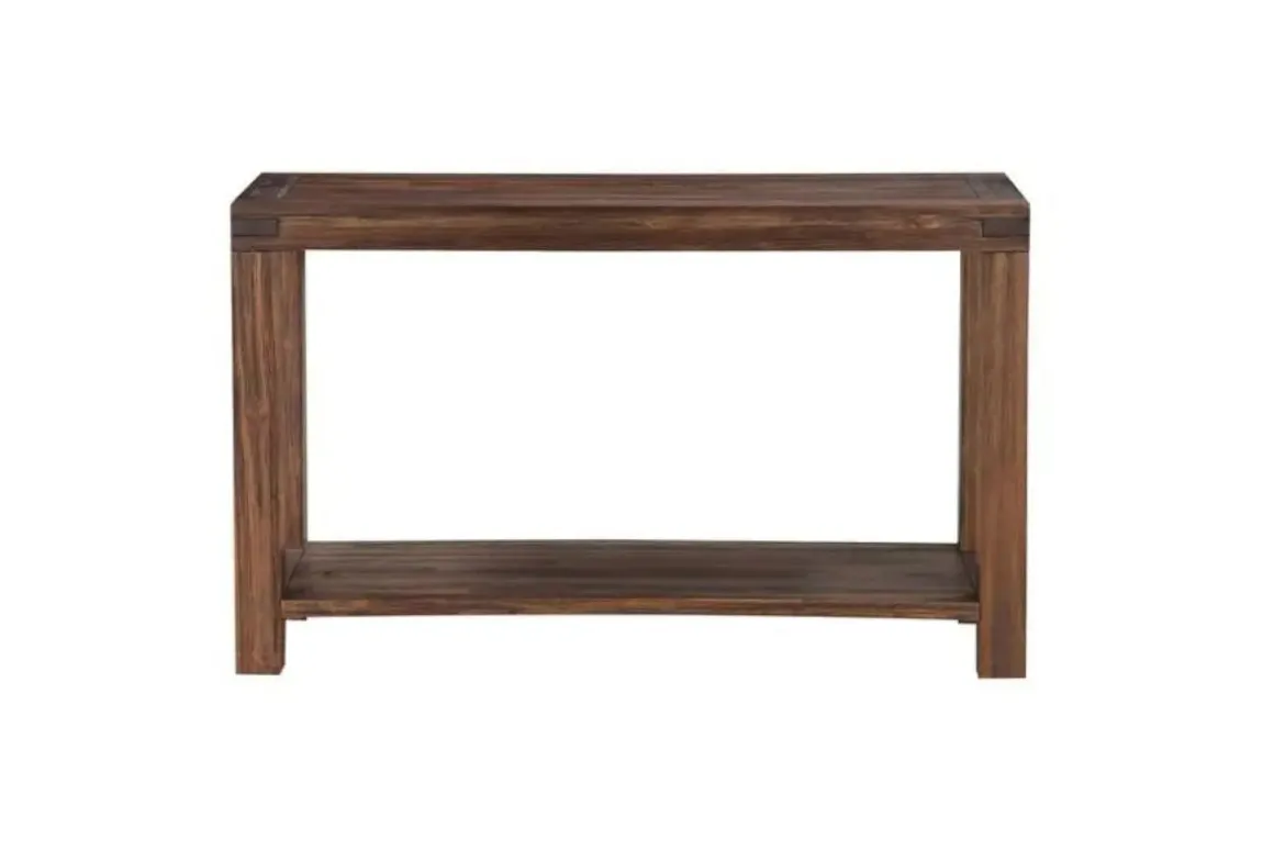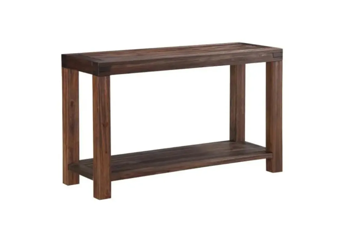 With its rugged durability and contemporary styling, the Meadow Console Table in Brick Brown will uplift your home with its rustic wire brushing and a heavily glazed brick brown finish, striking the ideal balance between modern and rustic. Crafted from solid Acacia, the sleek lines of this piece showcase the naturally occurring knots throughout. This console table is a real stunner.Product Details:• Versatile color and style• Open bottom shelf for storage• Constructed using solid acacia wood