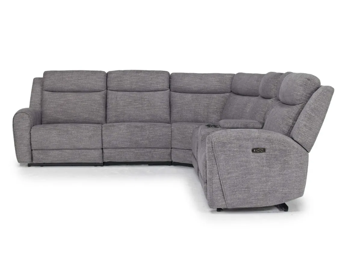 Revamp your living area with the luxurious Mia 6 Piece 2 Power Sectional in Gray. This sectional set offers unmatched comfort and contemporary style. The Mia Console features track arms, an upholstered base, a built-in console, and two cup holders, combining convenience with sophistication. The Mia Armless Chair and Wedge pieces add versatility and transitional charm with their plush foam cushions and sinuous springs for support. The Right Facing and Left Facing Power Recliners provide the ultimate relaxation with a dual power reclining mechanism and button operation. Product Details: • Crafted with durable wood frames • Premium quality fabric material • A warm and inviting gray color