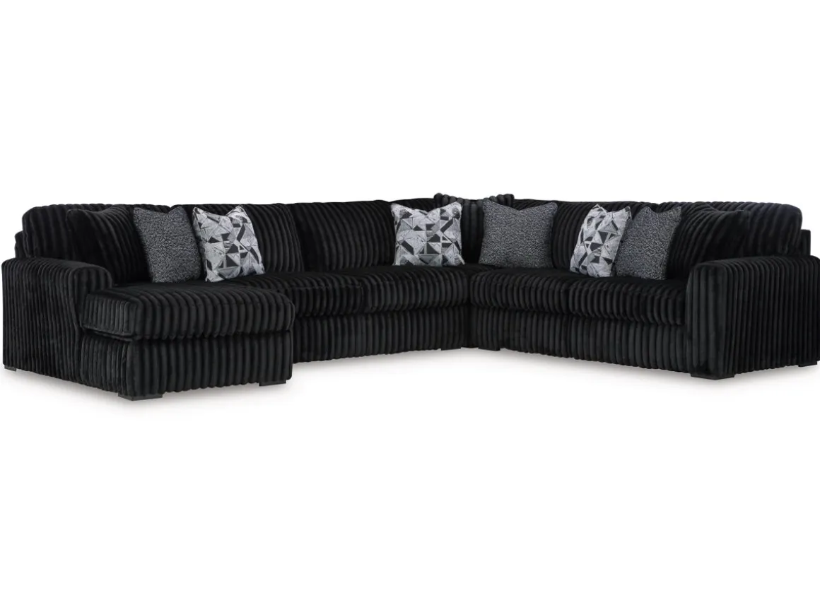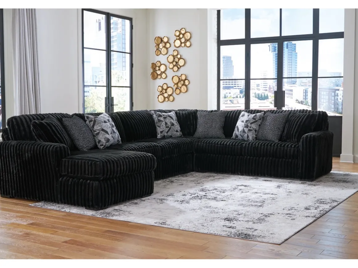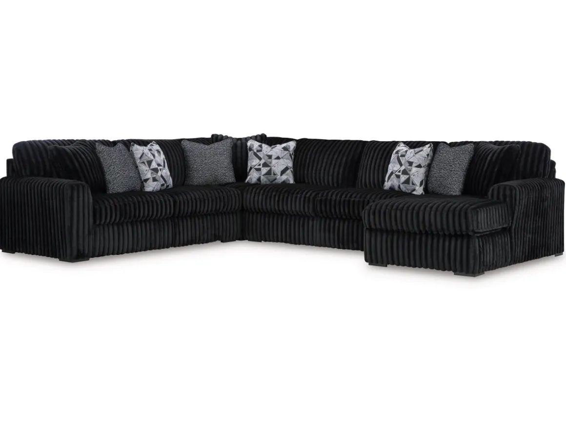 Settle into everyday comfort with the Midnight Madness Sofa Chaise Sectional in Onyx, Right Facing, a stylish gathering spot designed to bring family and friends together. Wrapped in a rich Onyx fabric, its modern channeling and deep seating create a lounge‑worthy experience perfect for movie nights, weekend naps, or hosting a full house. The right‑facing chaise stretches out room for relaxing, while reversible cushions and a supportive loose‑back design help keep your hangout space looking fresh and feeling cozy. Built for families who want both comfort and value, this contemporary L‑shaped piece anchors your living room with bold style that fits effortlessly into modern decor.