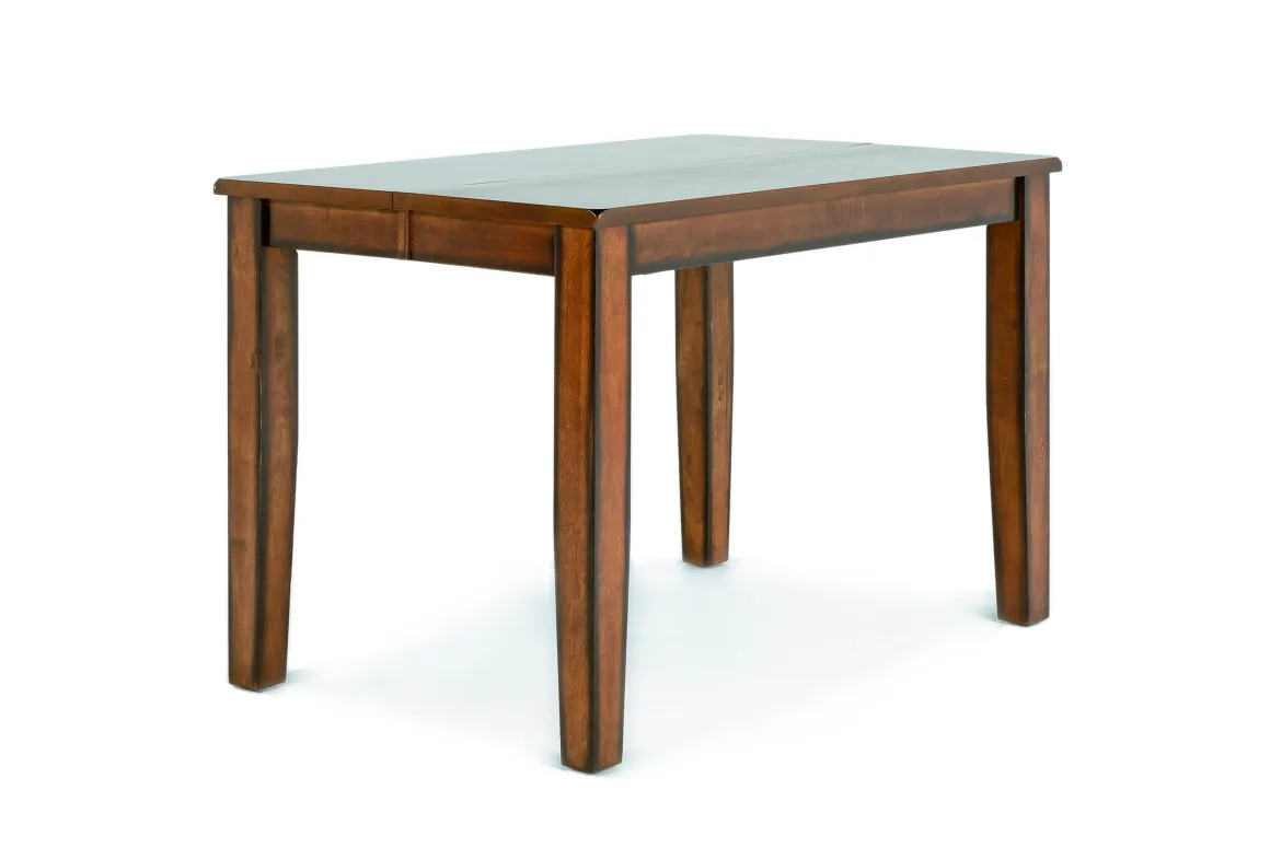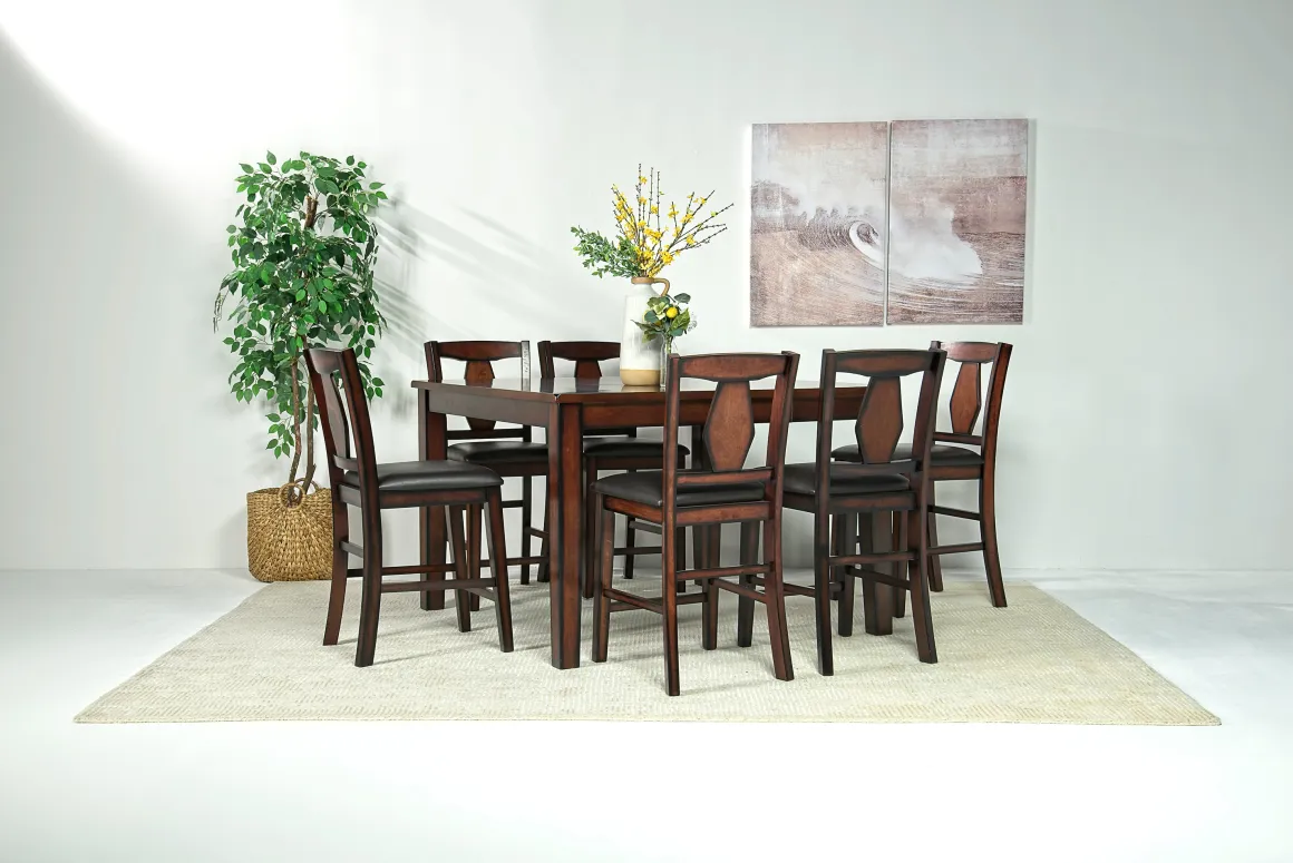 Elevate and expand your dining experience! The Napa Counter Height Extendable Dining Table & 6 Stools in Brown has space for everyone at your dinner party. This traditional style table has a butterfly leaf extension so your table can have room for more guests. The counter height dining table feels elegant and grown up. Go on, throw a party. When you promise your friends that there is always room at your table, you mean it!Product Details:• Tapered square legs are stable and stylish• Foam seat cushions create a comfortable place to sit• Walnut finish shows off the beautiful wood grainDimensions:• Table: 36-54”W x 54”D x 35.875”H• Chair: 19.75”W x 21.5”D x 41.5”H