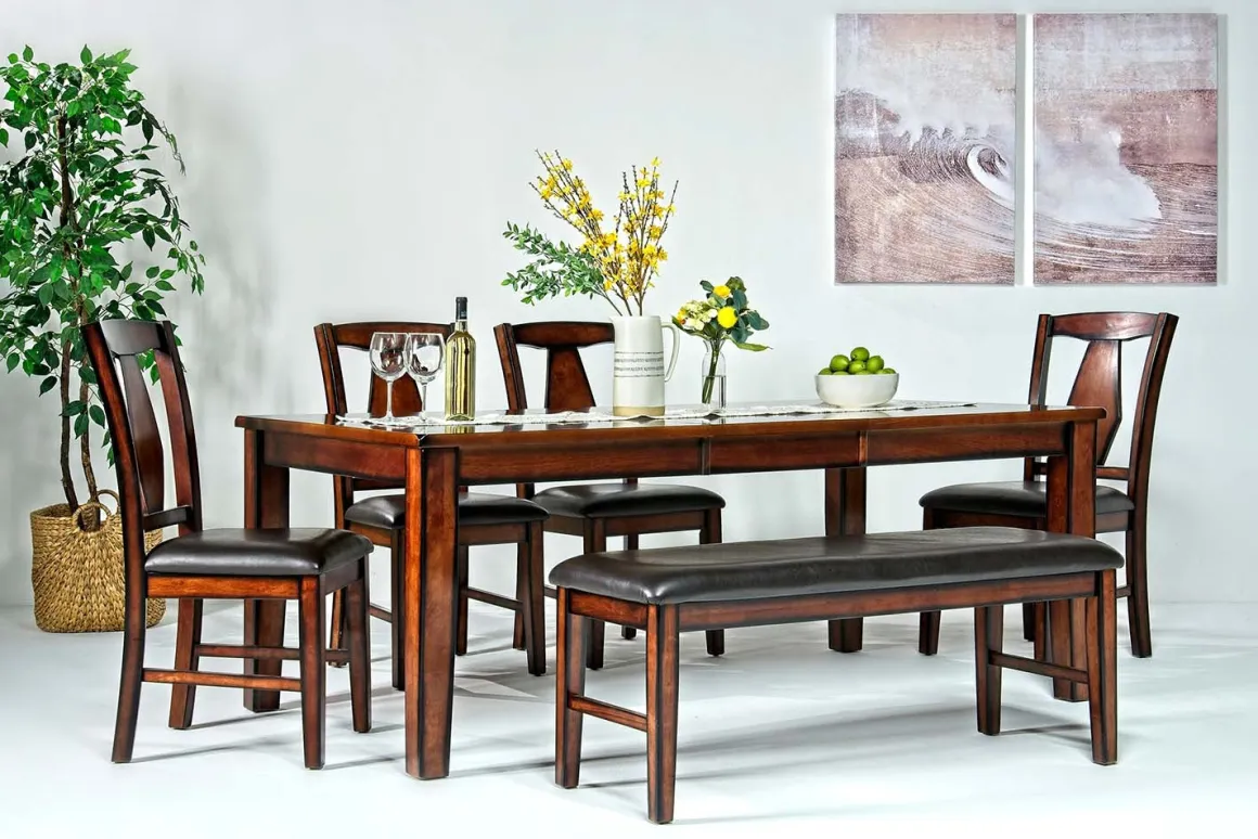 Napa Extendable Dining Table, 4 Chairs & Bench In Brown