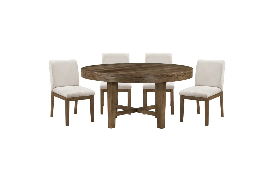 The Oaklyn Round Dining Table & 4 Chairs in Brown creates an inviting gathering space where family moments feel effortless and everyday meals become something to look forward to. The warm brown finish pairs beautifully with the soft, upholstered seats, adding comfort while keeping the room feeling open and relaxed. Its round silhouette encourages easy conversation, while the sturdy construction brings long‑lasting value to the heart of your home. Styled for modern family living, this set blends seamlessly with transitional decor and offers a welcoming backdrop for everything from weekend breakfasts to holiday dinners.