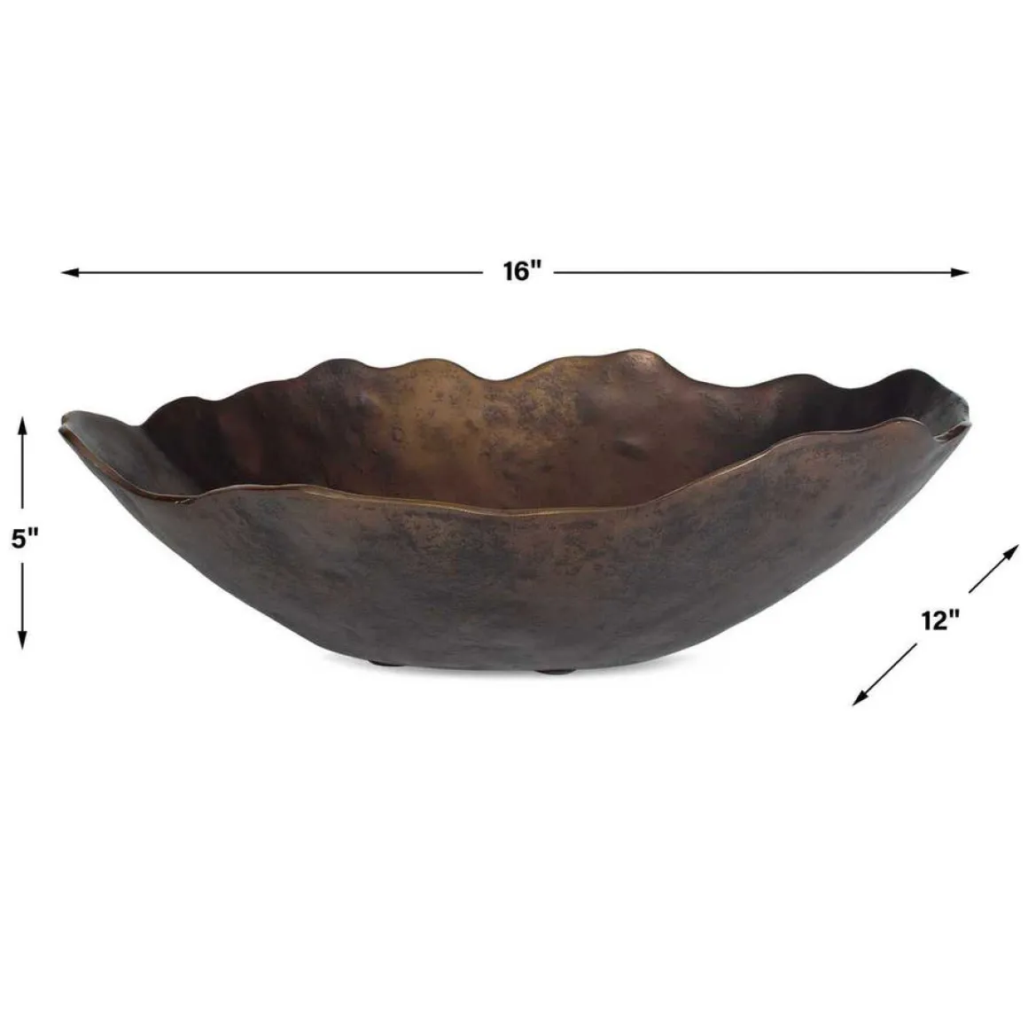 Elevate your decor with this stunning sculptured cast aluminum bowl, featuring an organic wavy edge and a rich, golden dark bronze finish and hammered texture. Perfect as a statement centerpiece or a sophisticated accent piece, its handcrafted texture adds depth and elegance to any space. May be hung on wall or used as tabletop accessory. Safe for outdoor use.